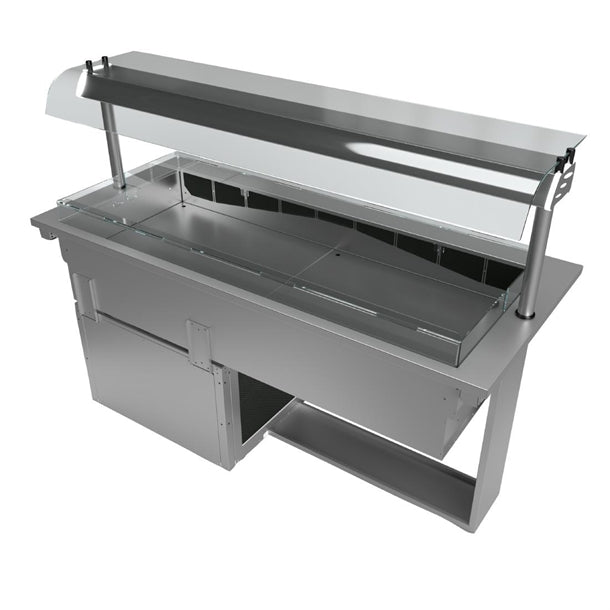 The Moffat D4RW is a reliable chilled food display unit with the unique Moffat "Polar Air Stream" system. This innovative technology delivers a constant wall of cold air which moves across the well - blanketing the displayed food and then recirculating it back through the system. This not only ensures food is kept at the desired temperature, it also helps to bring down running costs.