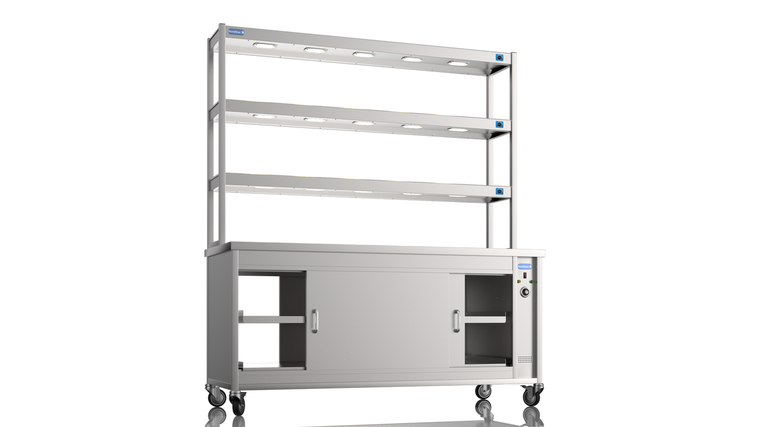 The Nordstar 3 Tier Gantry and Pass-though Hot Cupboard Combo 1800 Nord Star Pass-through Hot Cupboard with three Tier Gantry Hot Cupboard is a high quality, reliable appliance, ideal for care homes, restaurants and canteens. Constructed with easy to clean stainless steel, contents are kept at warm and hygienic temperatures due to its fully insulated panels, easily accessible using our own sliding door system both sides. Perfect for confined spaces such as hallways and corridors.