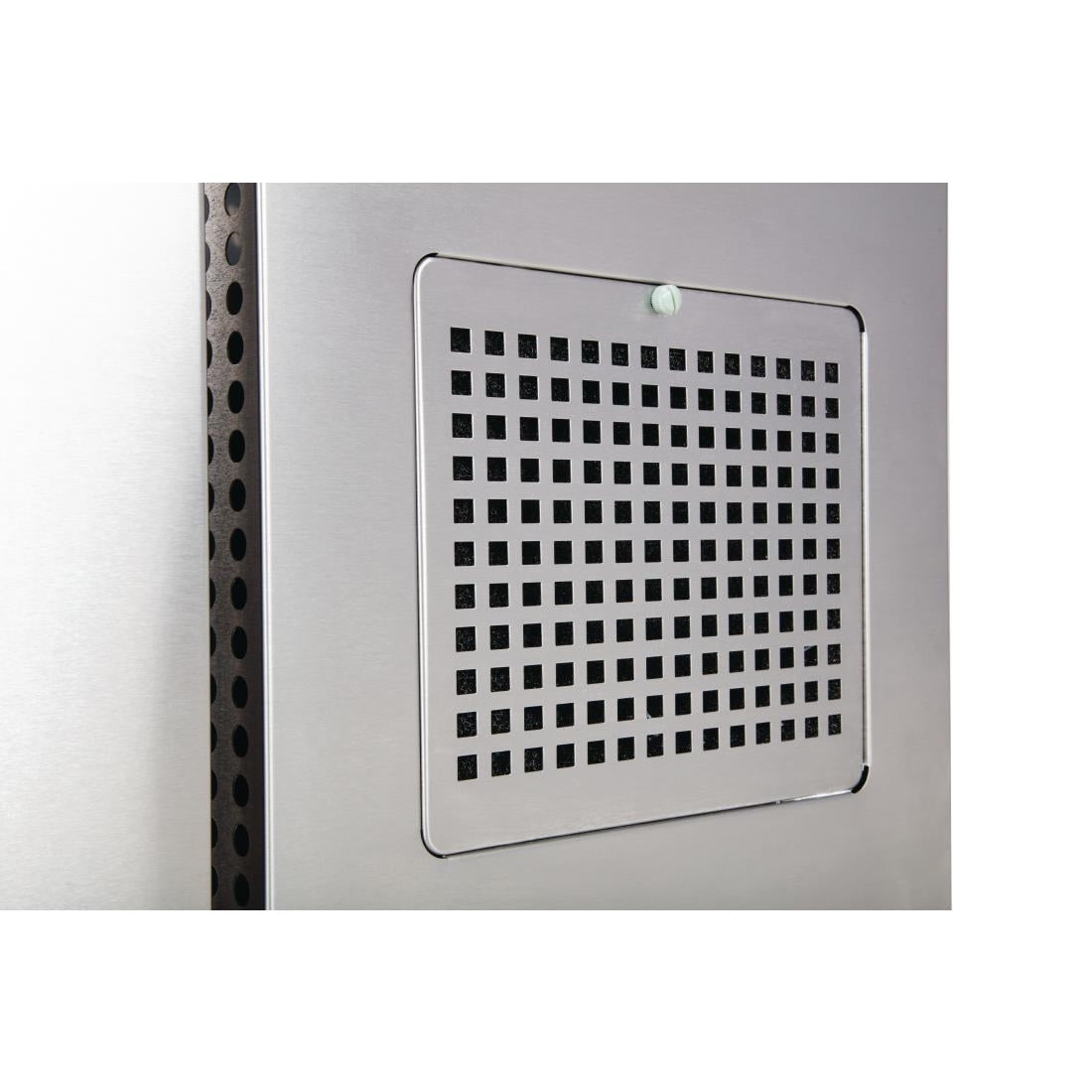 With its powerful forced air cooling system, the fridge delivers effective, even and efficient cooling inside, ensuring your ingredients are always stored at the right temperature - even when the doors are opened regularly. And thanks to the strong stainless steel construction, the fridge is exceptionally durable and easy to clean - essential features for professional refrigeration.