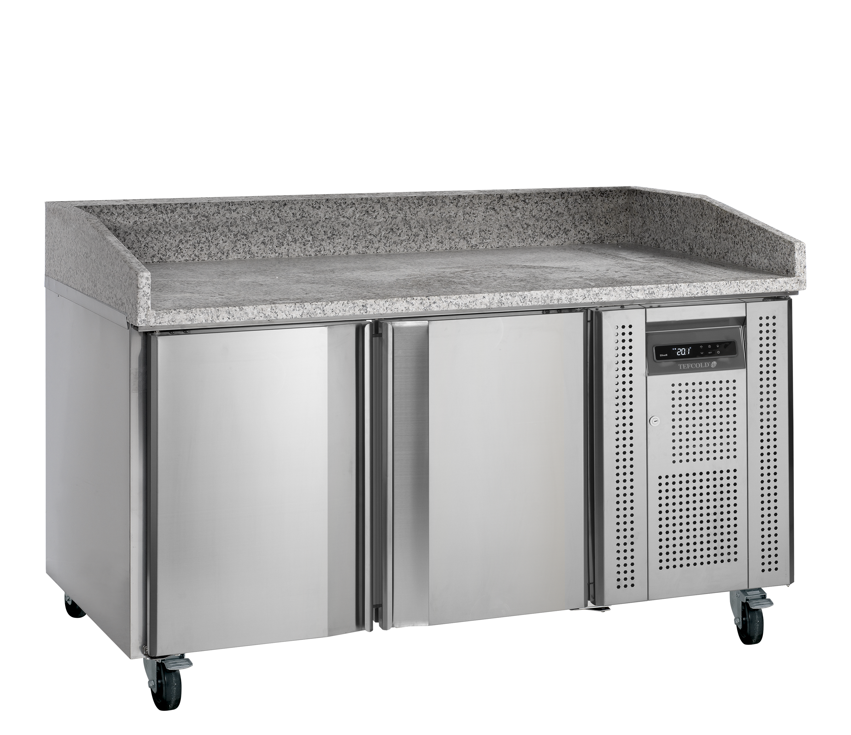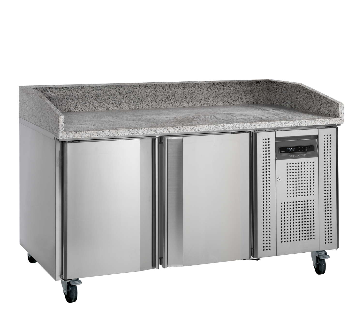 The PT1200 pizza table is engineered to meet business needs. This design features a sleek stainless steel build, providing durability and a professional aesthetic. With guides for 7 pizza trays in each of the two doors (400x600 mm), the PT1200 offers ample storage and easy access. The granite worktop not only guarantees a hygienic surface but also provides the ideal workspace for pizza preparation. Additionally, the unit is equipped with convenient automatic defrost, self-closing doors, and ventilated cooling, ensuring efficient and hassle-free operation for your food service establishment.