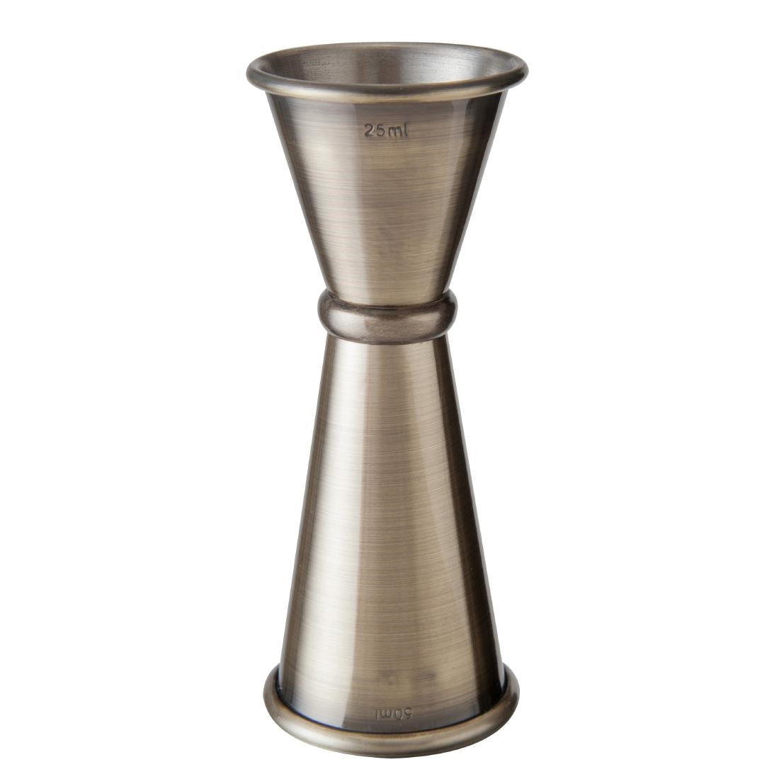 Made from stainless steel and featuring a antique brass finish, this Beaumont jigger is not only highly durable and easy to clean, but also benefits from an attractive appearance that's sure to spruce-up any back bar.
