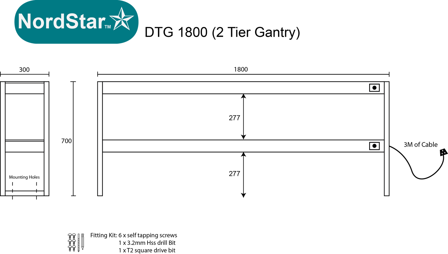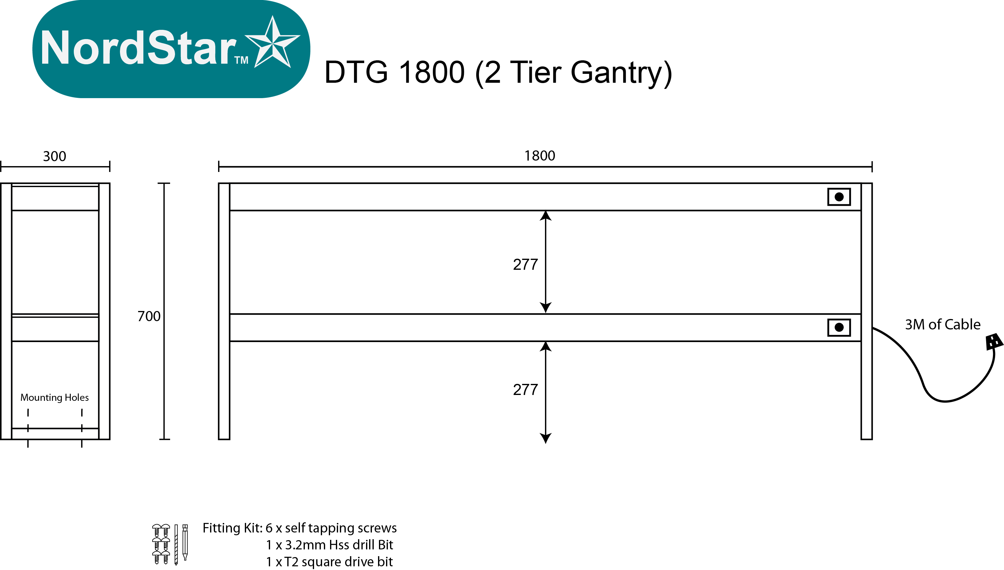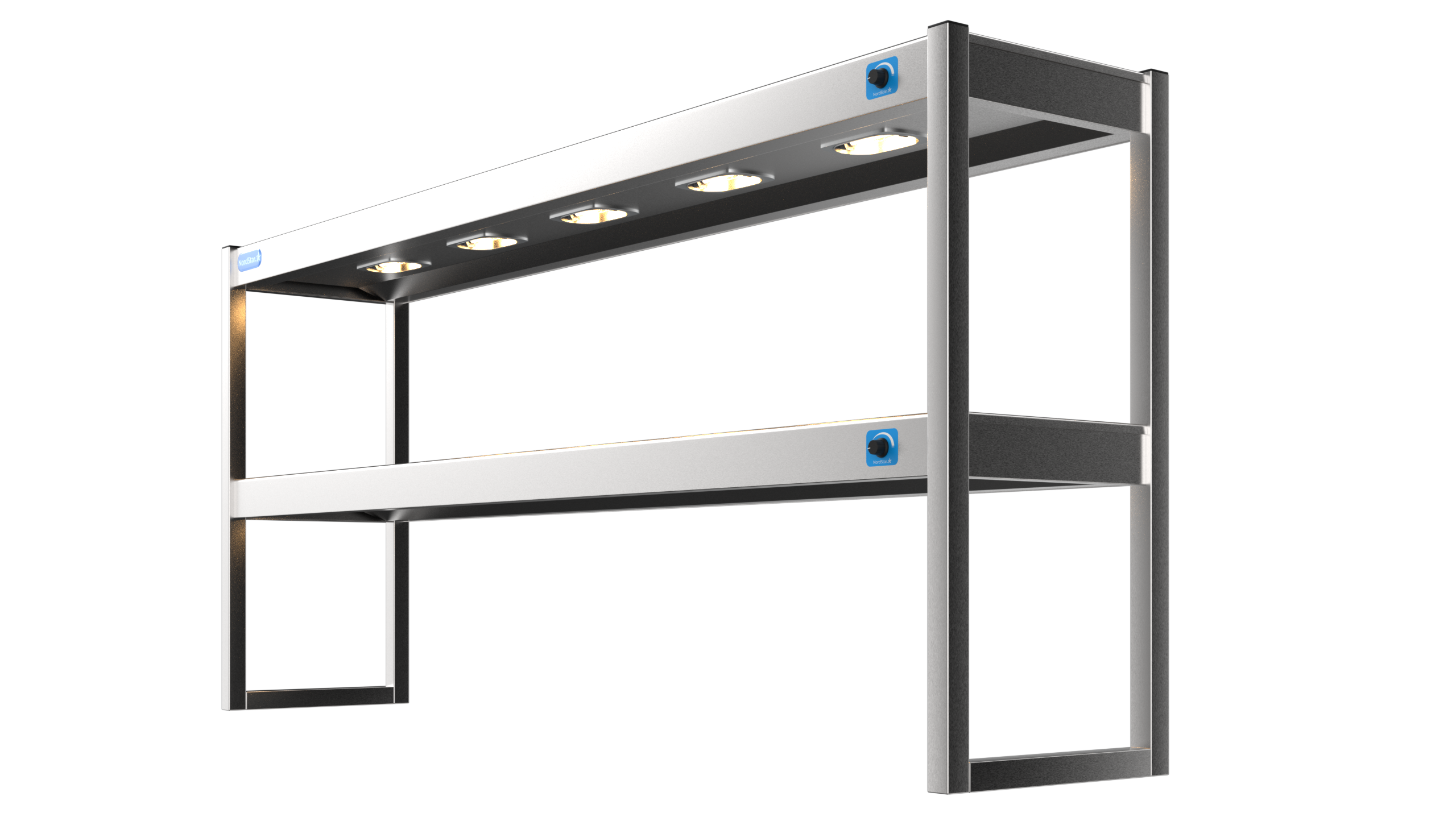 Two Tier Pass Over Gantry 1800mm is a robust over-shelving with 10 x Quartz lamp heating, Cleverly designed offering a strong fully welded stainless steel construction, each tier has a separate dimmer switch for individual control, Standard lengths are made to suit the NordStar Premier range of hot cupboard and are sold as a combination Hot Cupboard and Gantry Every gantry comes with a fitting kit to fit onto all stainless steel work surfaces, cupboards and fridges. These units are the best things for chefs passes and commonly used in restaurants, takeaways, canteens, care homes and schools.