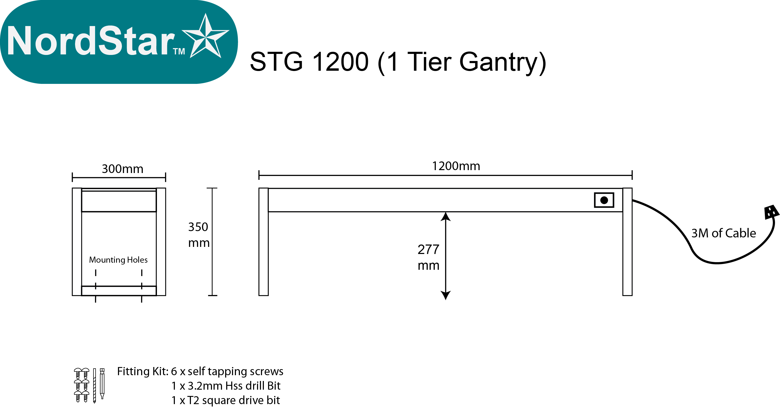 Nordstar Heated Gantry Single Tier Chefs Rack Overshelf 1200mm 3 Quartz Lamp | STG1200