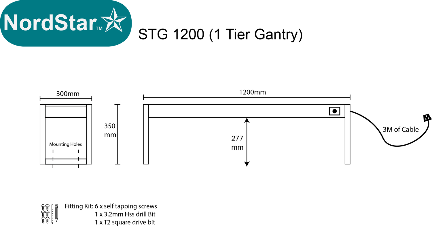 Nordstar Heated Gantry Single Tier Chefs Rack Overshelf 1200mm 3 Quartz Lamp | STG1200 is pre-ordered and will ship as soon as it is back in stock.