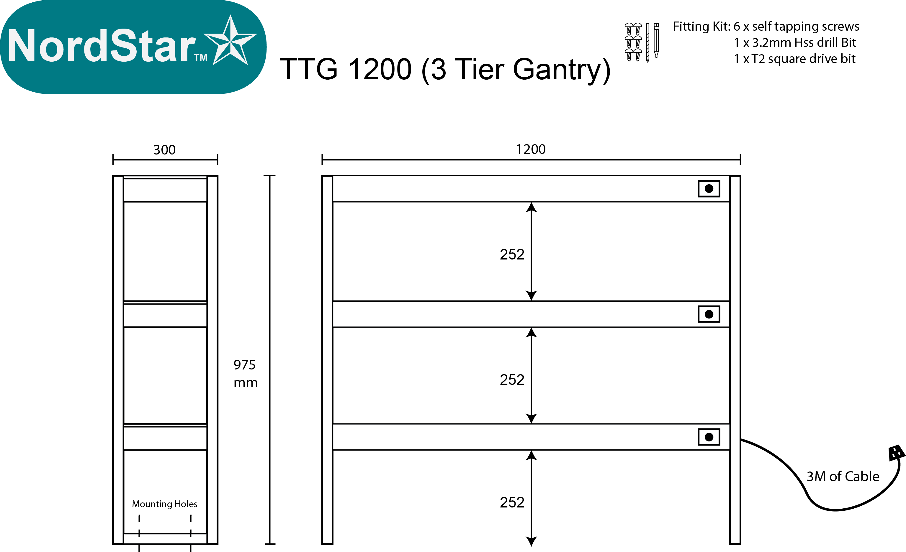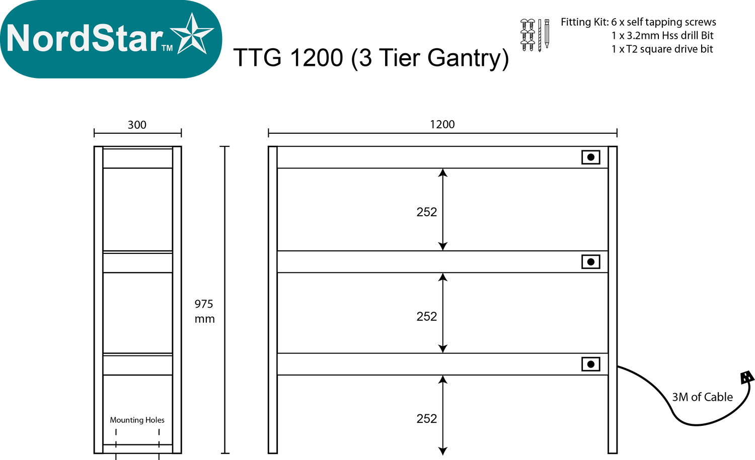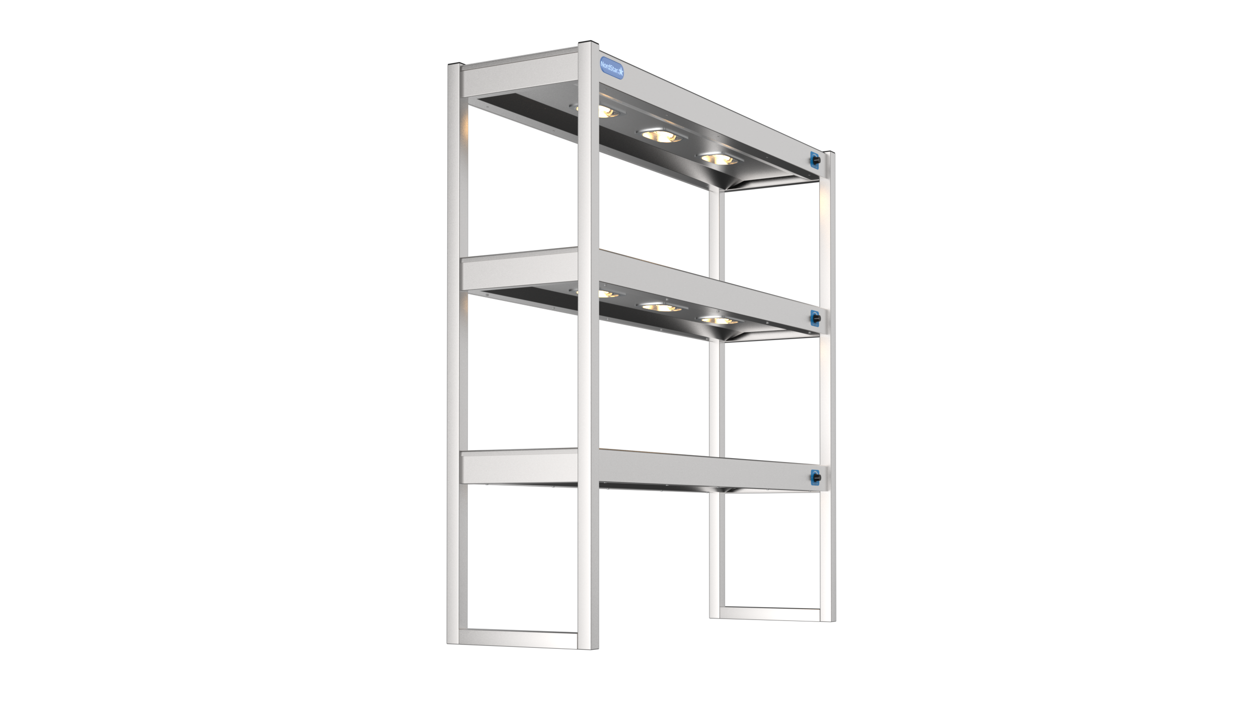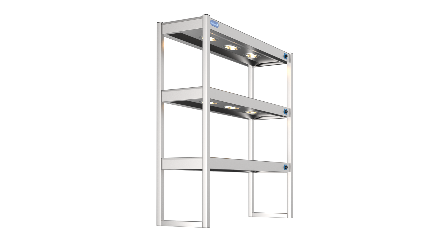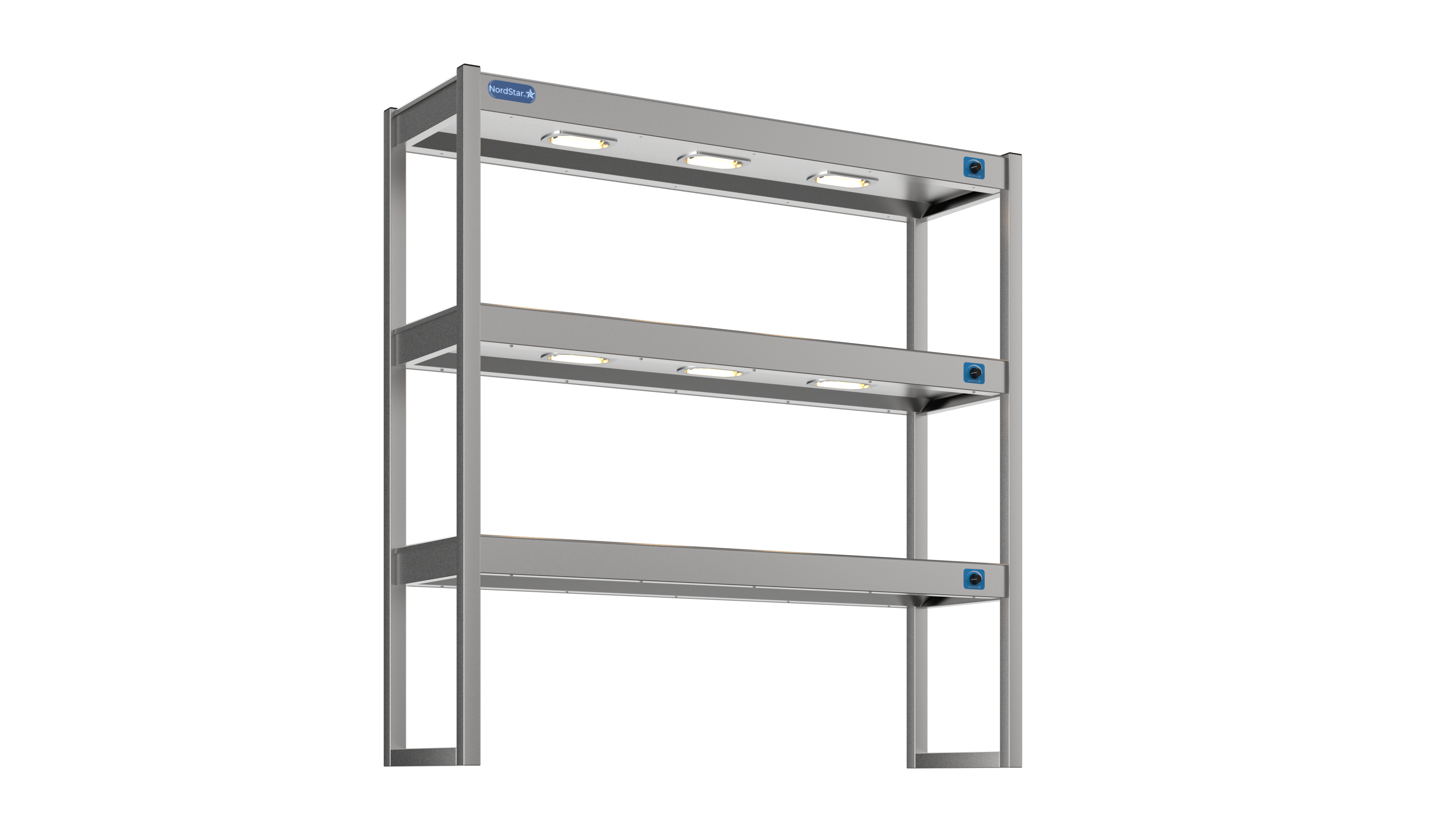 Three Tier Pass Over Gantry 1200mm is a robust over-shelving with 9 x Quartz lamp heating, Cleverly designed offering a strong fully welded stainless steel construction, each tier has a separate dimmer switch for individual control,  Standard lengths are made to suit the NordStar Premier range of hot cupboard and are sold as a combination Hot Cupboard and Gantry Every gantry comes with a fitting kit to fit onto all stainless steel work surfaces, cupboards and fridges. These units are the best things for chefs passes and commonly used in restaurants, takeaways, canteens, care homes and schools.