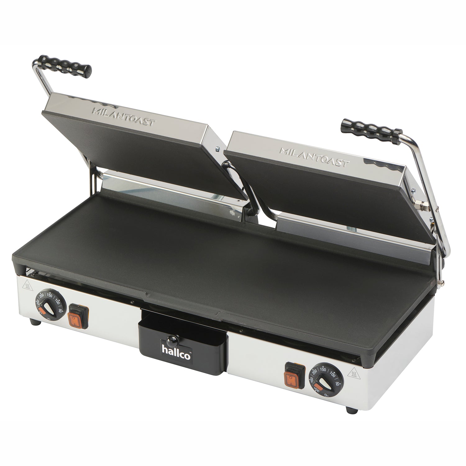 - Flat top and bottom non-stick plates