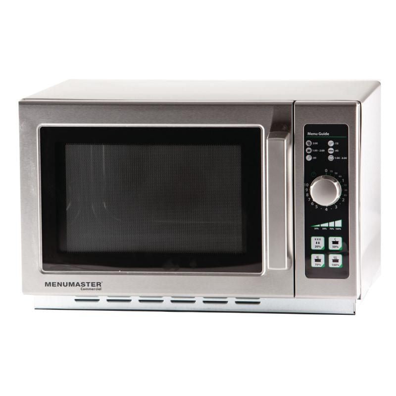 Simple and efficient, the Menumaster Medium Duty Microwave has a large cavity to cook double or batch quantities of food in one sitting. Using a motor driven antenna to reliably distribute energy throughout the chamber during cooking, each meal receives quick and consistent heating throughout the dish. You can monitor the process at any time by observing through the tempered glass door to ensure you get the exact result you desire. Constructed to withstand the hustle and bustle of establishments like coffee shops, dessert stations and cafes, this machine is stackable to save valuable counter space in a busy kitchen. Operate the device using a manual turn dial for quick and easy results, and a removable air filter also streamlines the cleaning process when required.
