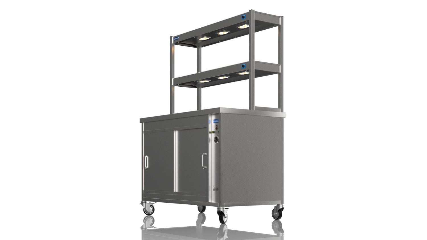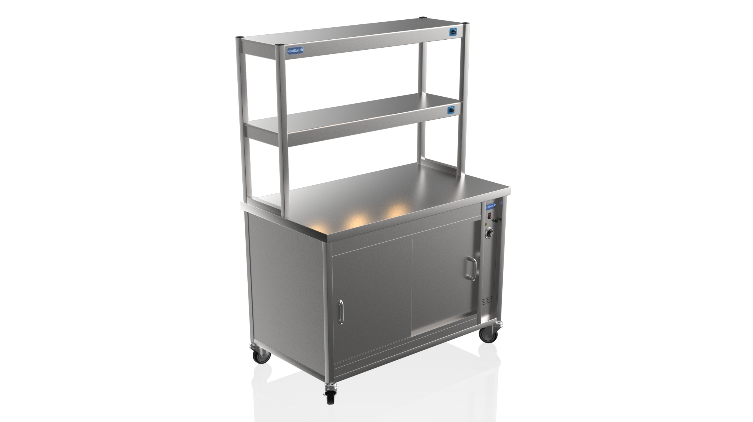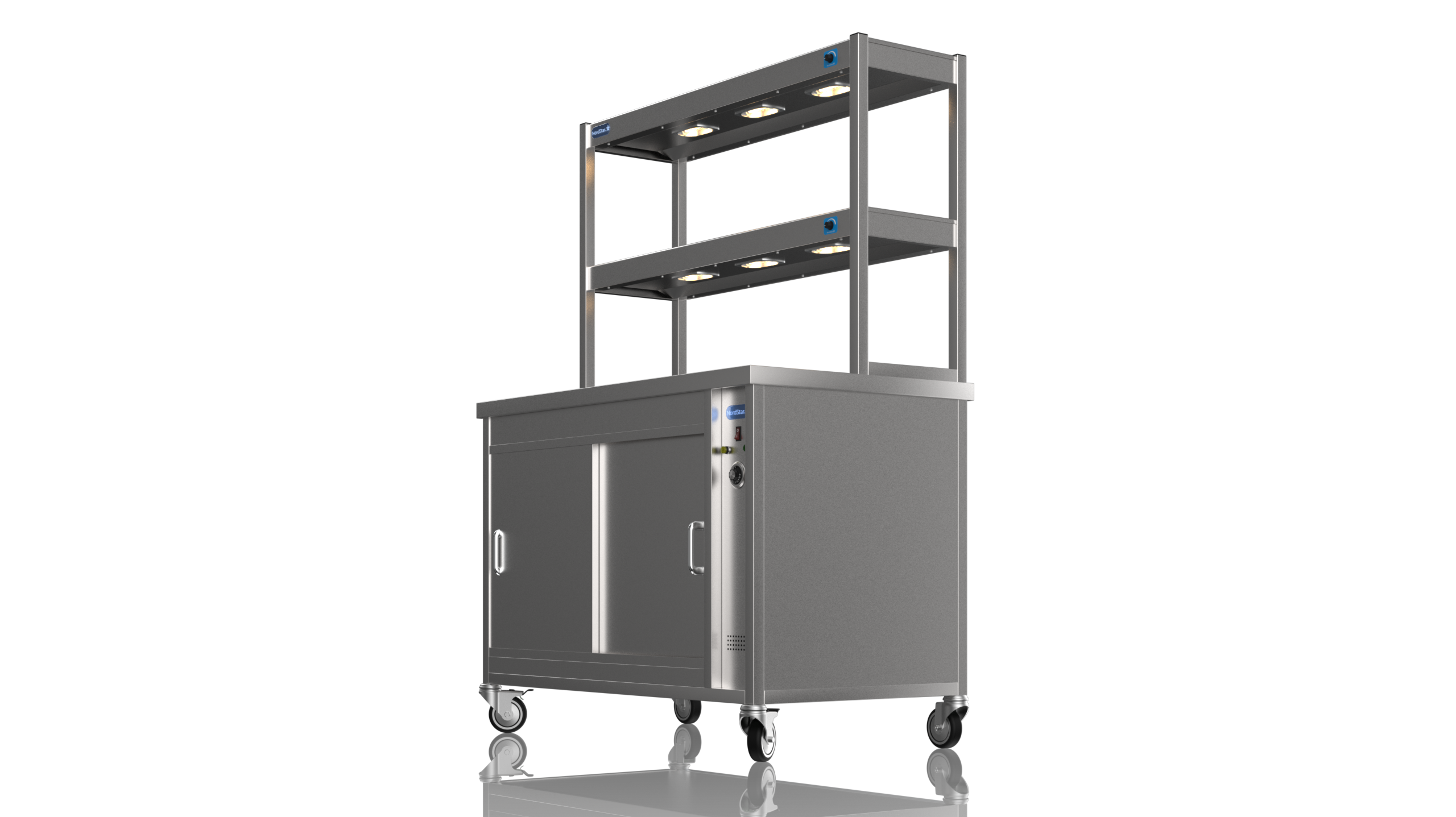 The Nordstar Double Tier Combo 1200 Nord Star Hot Cupboard with Two Tier Gantry Hot Cupboard is a high quality, reliable appliance, ideal for care homes, restaurants and canteens. Constructed with easy to clean stainless steel, contents are kept at warm and hygienic temperatures due to its fully insulated panels, easily accessible using our own sliding door system.