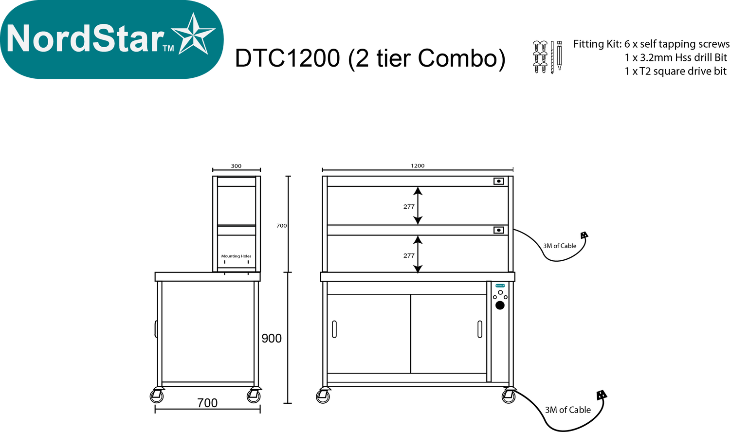 Nordstar Hot Cupboard With Heated Double Tier Gantry Chef Pass 1200mm | DTC1200