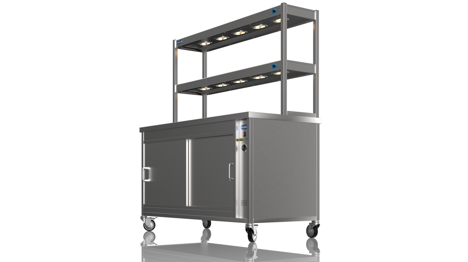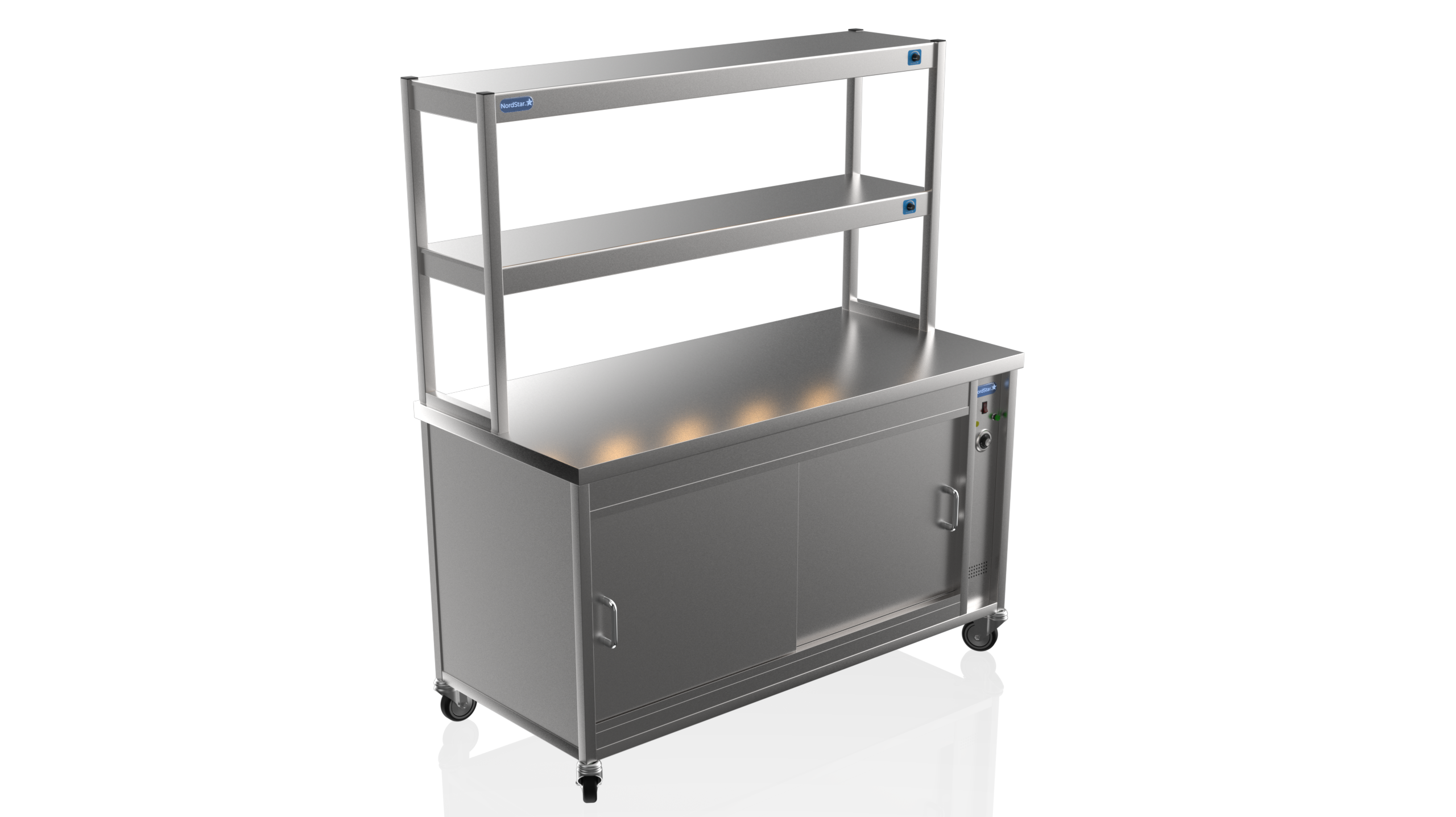 The Nordstar Double Tier Combo 1500 NordStar Hot Cupboard with Two Tier Gantry Hot Cupboard is a high quality, reliable appliance, ideal for care homes, restaurants and canteens. Constructed with easy to clean stainless steel, contents are kept at warm and hygienic temperatures due to its fully insulated panels,  easily accessible using our own sliding door system.