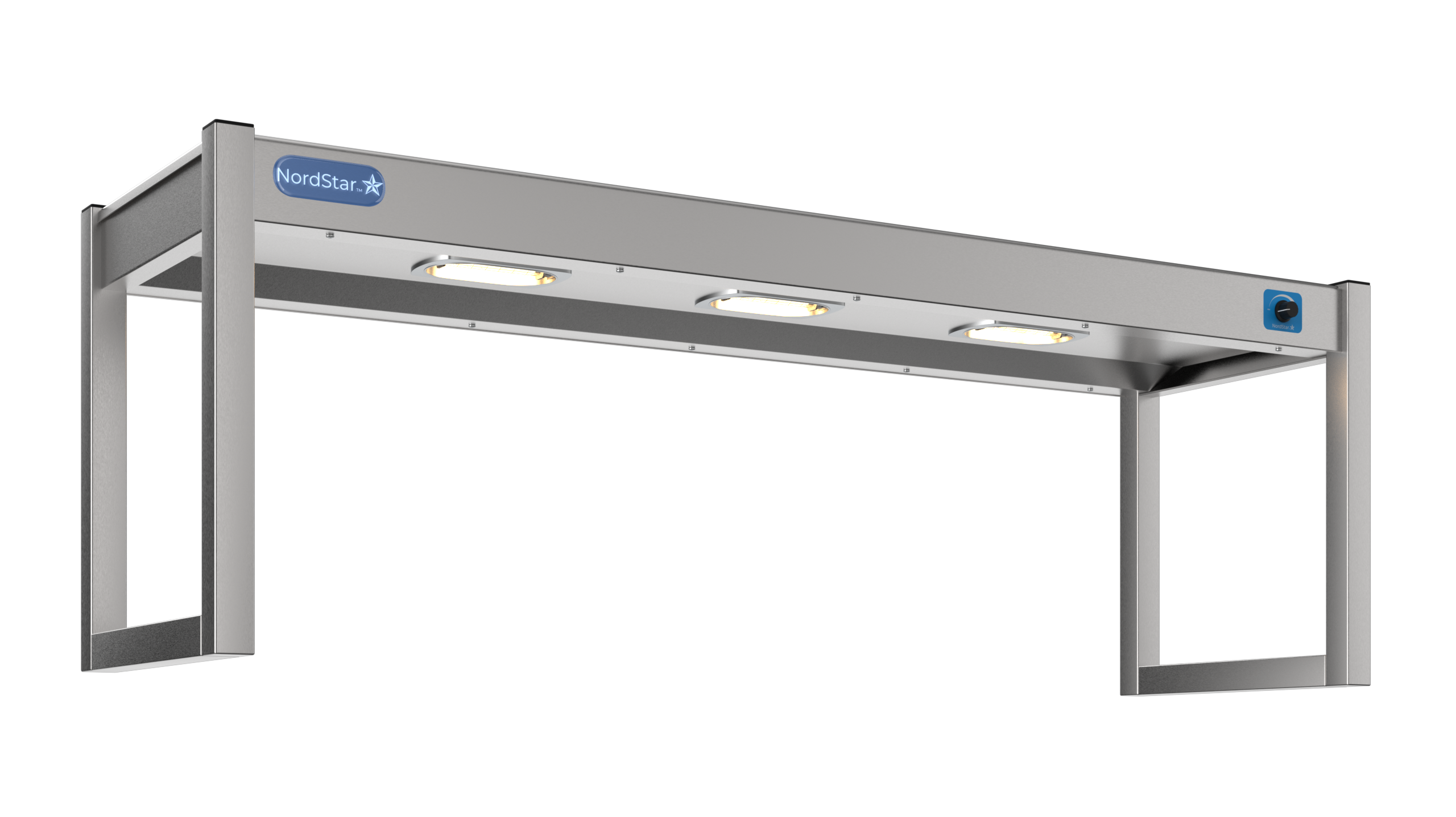 Single tier Gantry features 3 x heated lamps, easy to use dimmer switch and will keep counter top food warm ready for service. It is ideal for keeping food warm / plated meals or being used as a plate warmer.