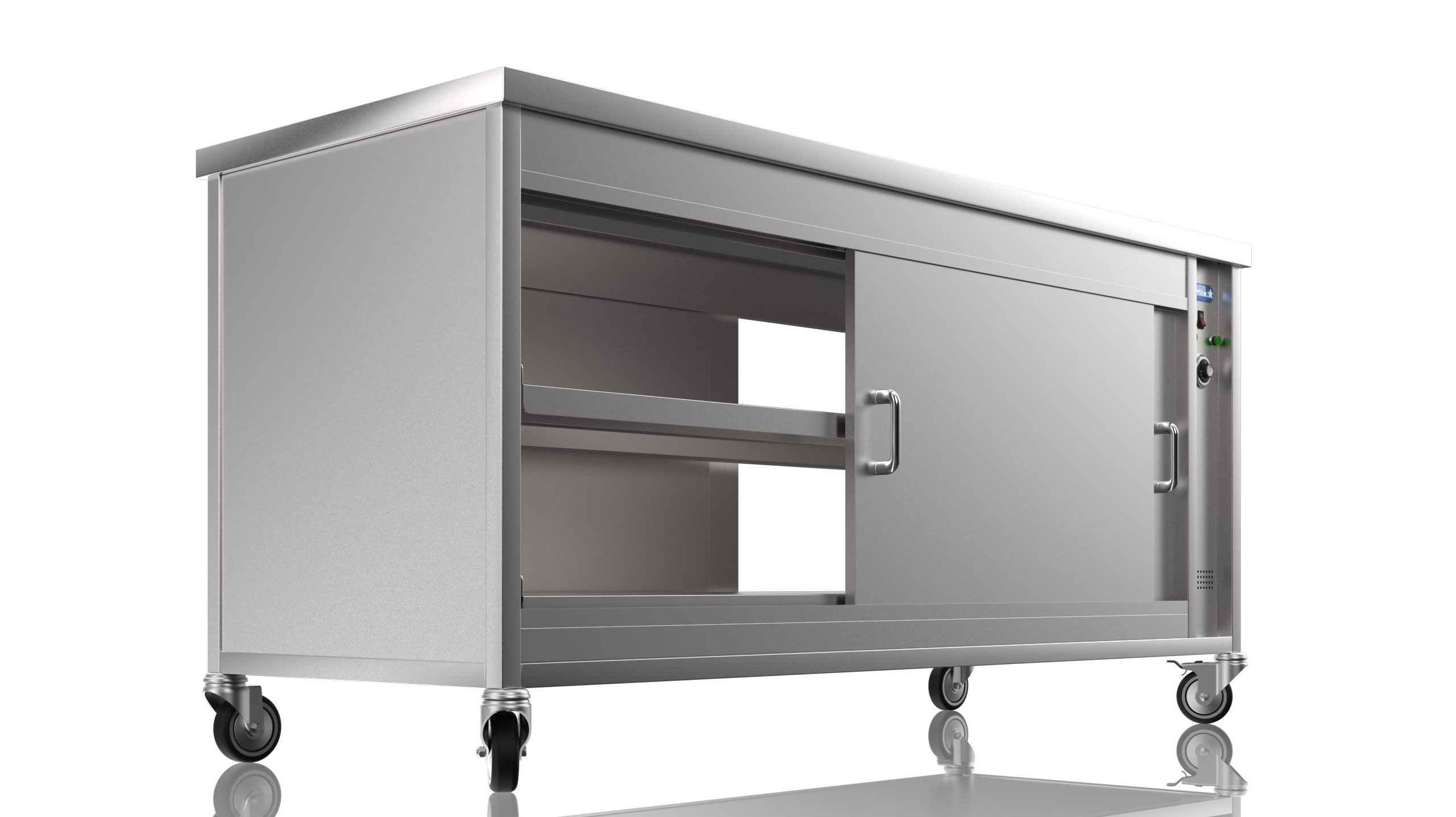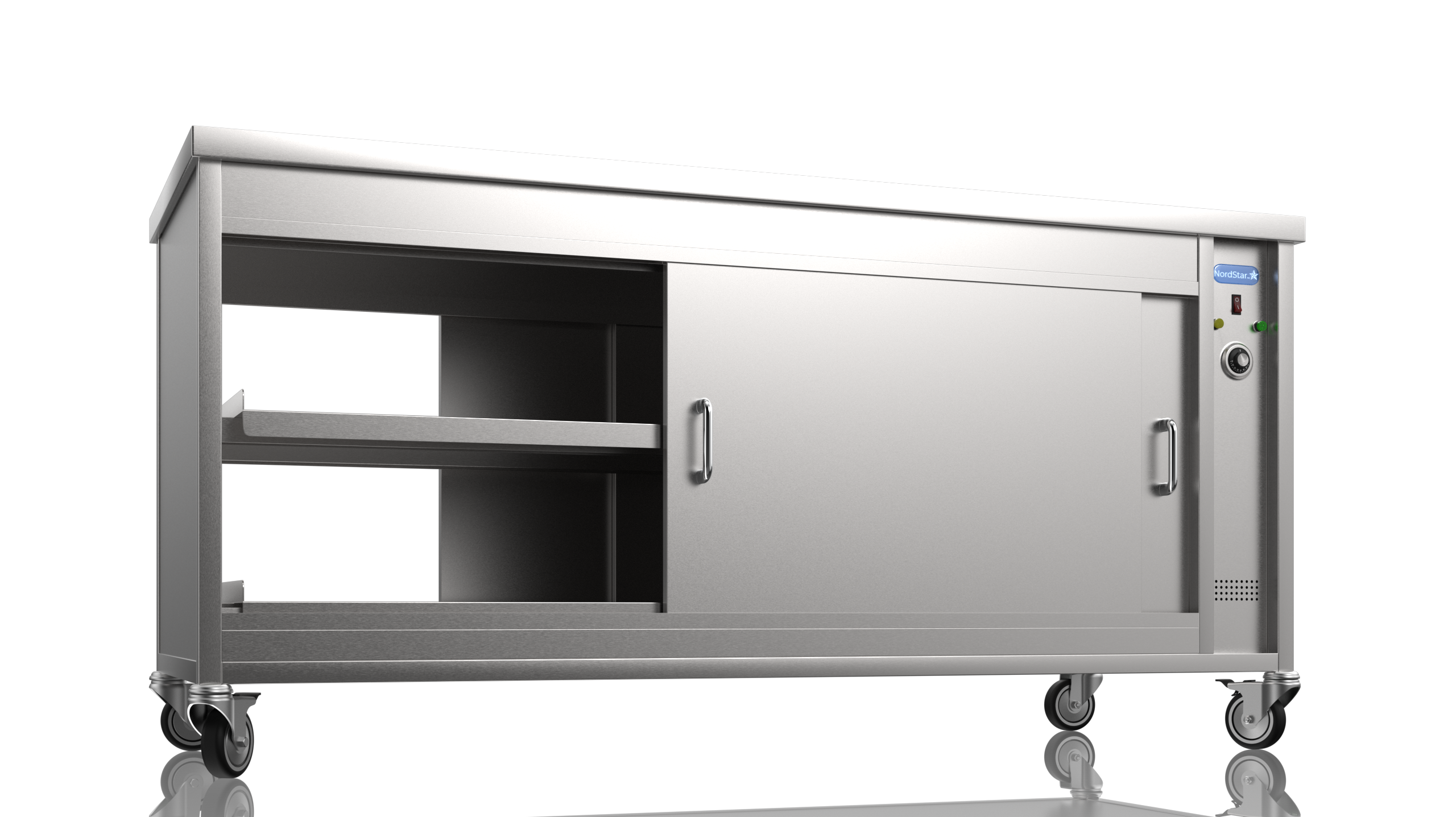 The Nordstar 1800 Pass Through Hot Cupboard Nord Star Pass through Hot Cupboard is a high quality, reliable appliance, ideal for care homes, restaurants, Takeaways and canteens. Constructed with easy to clean stainless steel, contents are kept at warm and hygienic temperatures due to its fully insulated panels, easily accessible using our own sliding pass through door system. Perfect for confined spaces such as hallways and corridors.