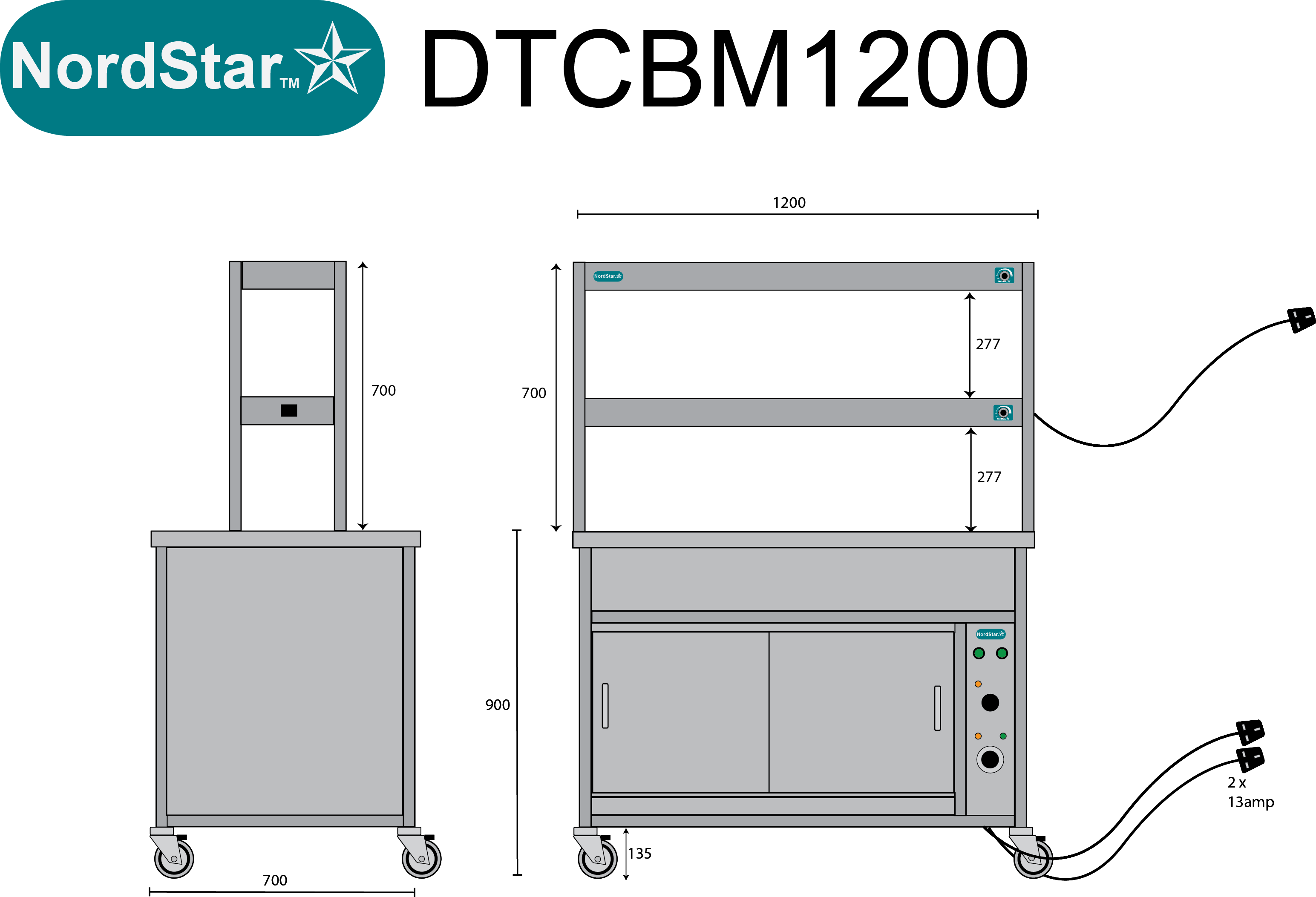 Nordstar NordStar Hot Cupboard Bain Marie 3 x 1/1GN With 2 Tier Heated Gantry | DTCBM1200