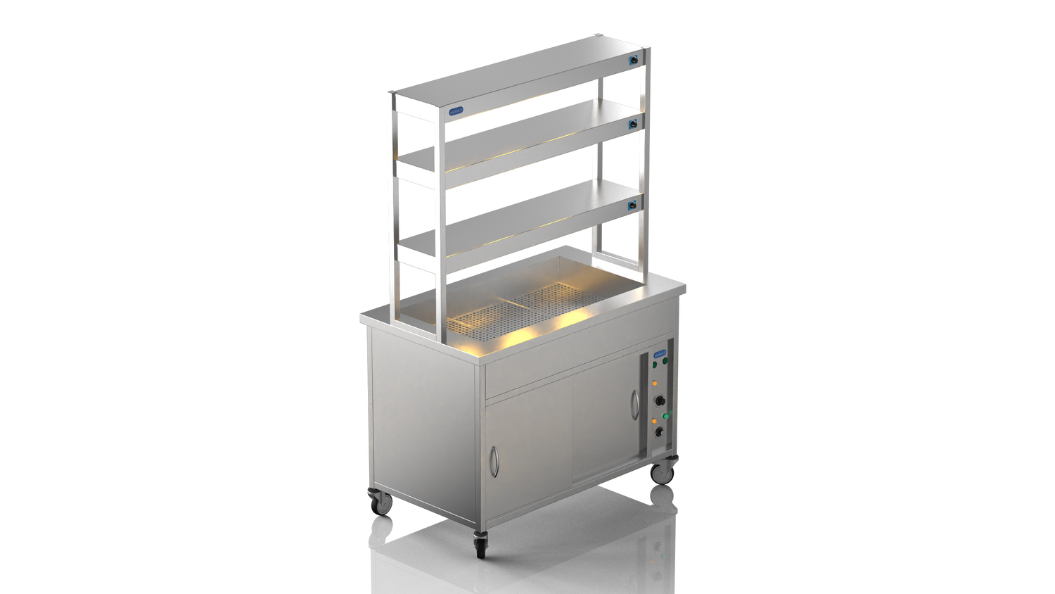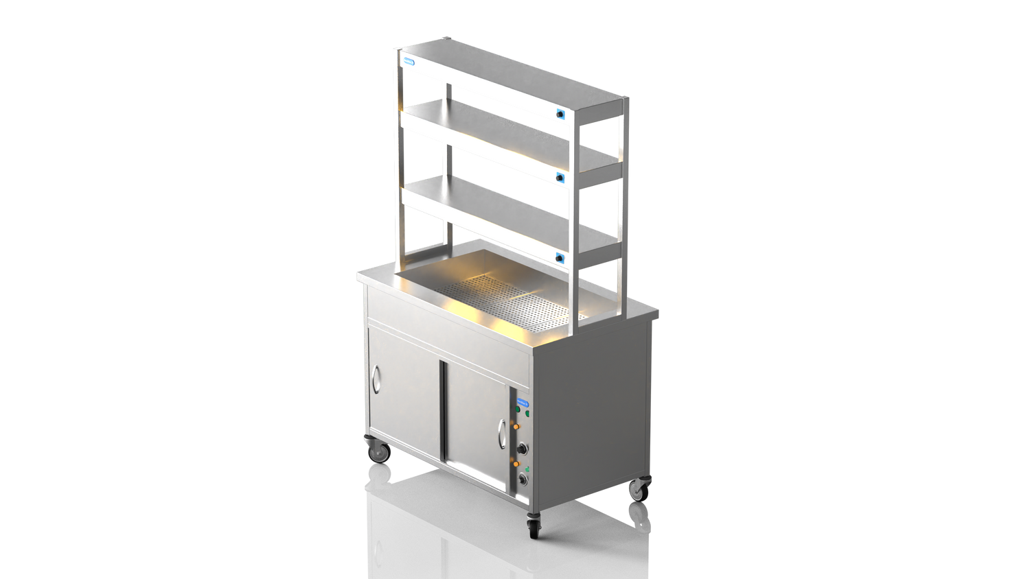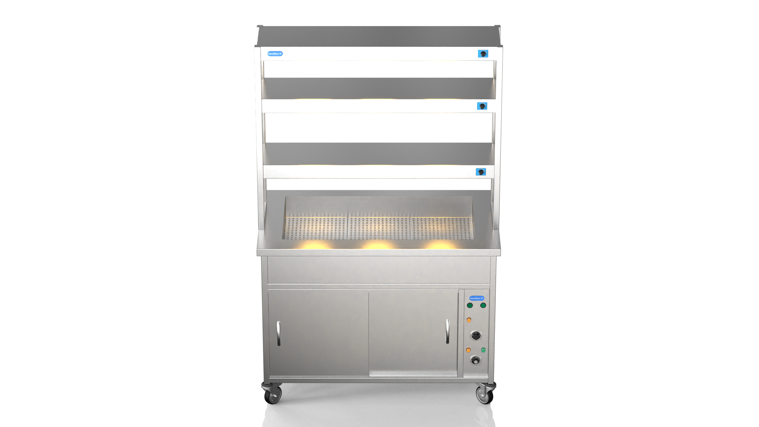 The independently controlled Bain Marie top is fully adaptable and can accommodate smaller pans, making it easy to serve a diverse range of dishes — ideal for catering to dietary preferences or special meal plans. Key Features: Fits 3 x 1/1 GN pans – Compact yet spacious enough for busy food service Dry heat Bain Marie top – Rapid heating and easy to maintain Three-tier heated gantry – Keeps food warm and visually appealing Hot cupboard with thermostat control – Maintains plate and food temperature Simmerstat control for Bain Marie – Precision temperature control Fitted with heavy-duty castors – Easy mobility for flexible positioning Optional accessories – Tray slide and sneeze guard available on request Gastronorm pans sold separately Gastronorm dividers sold separately.