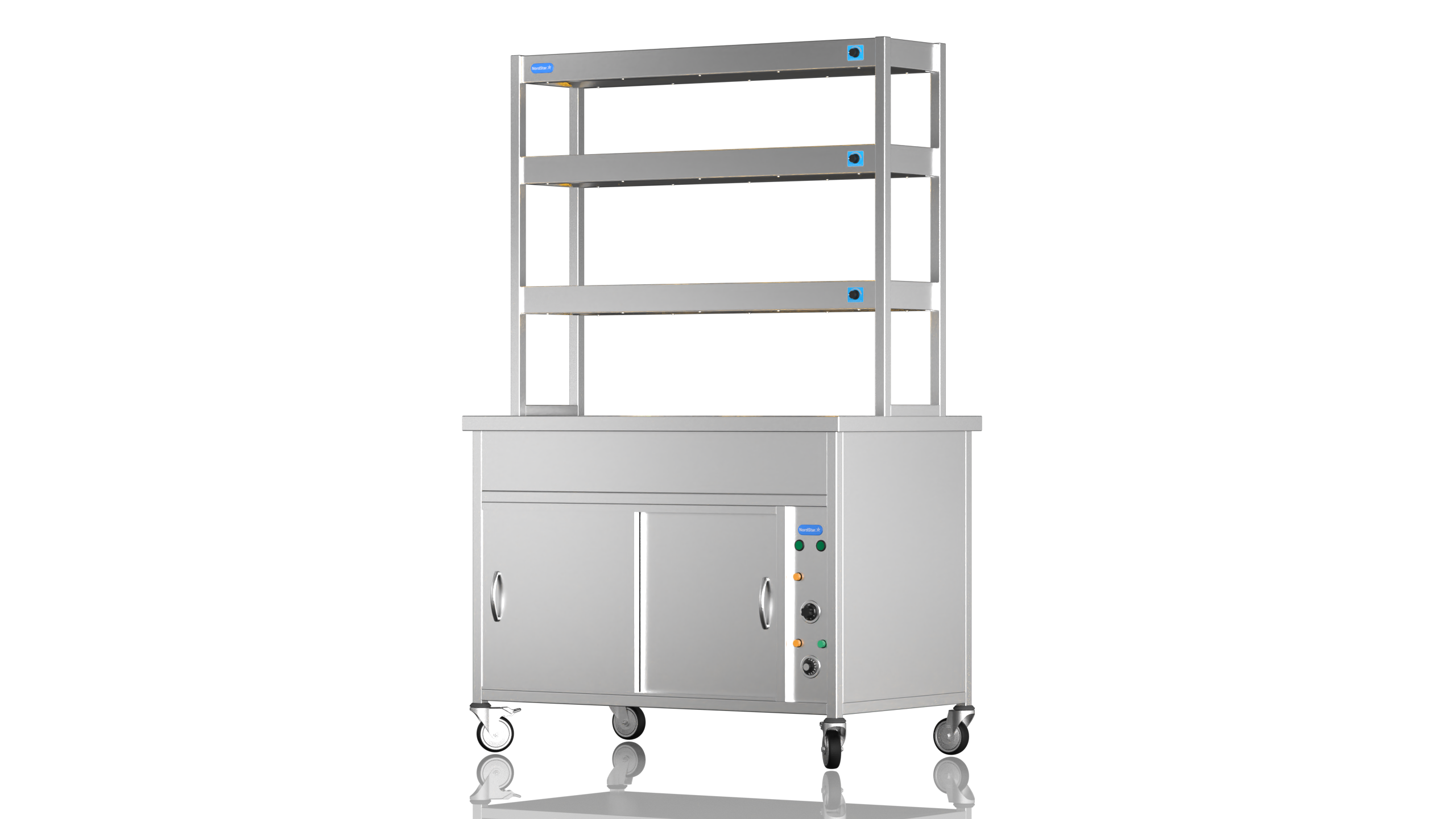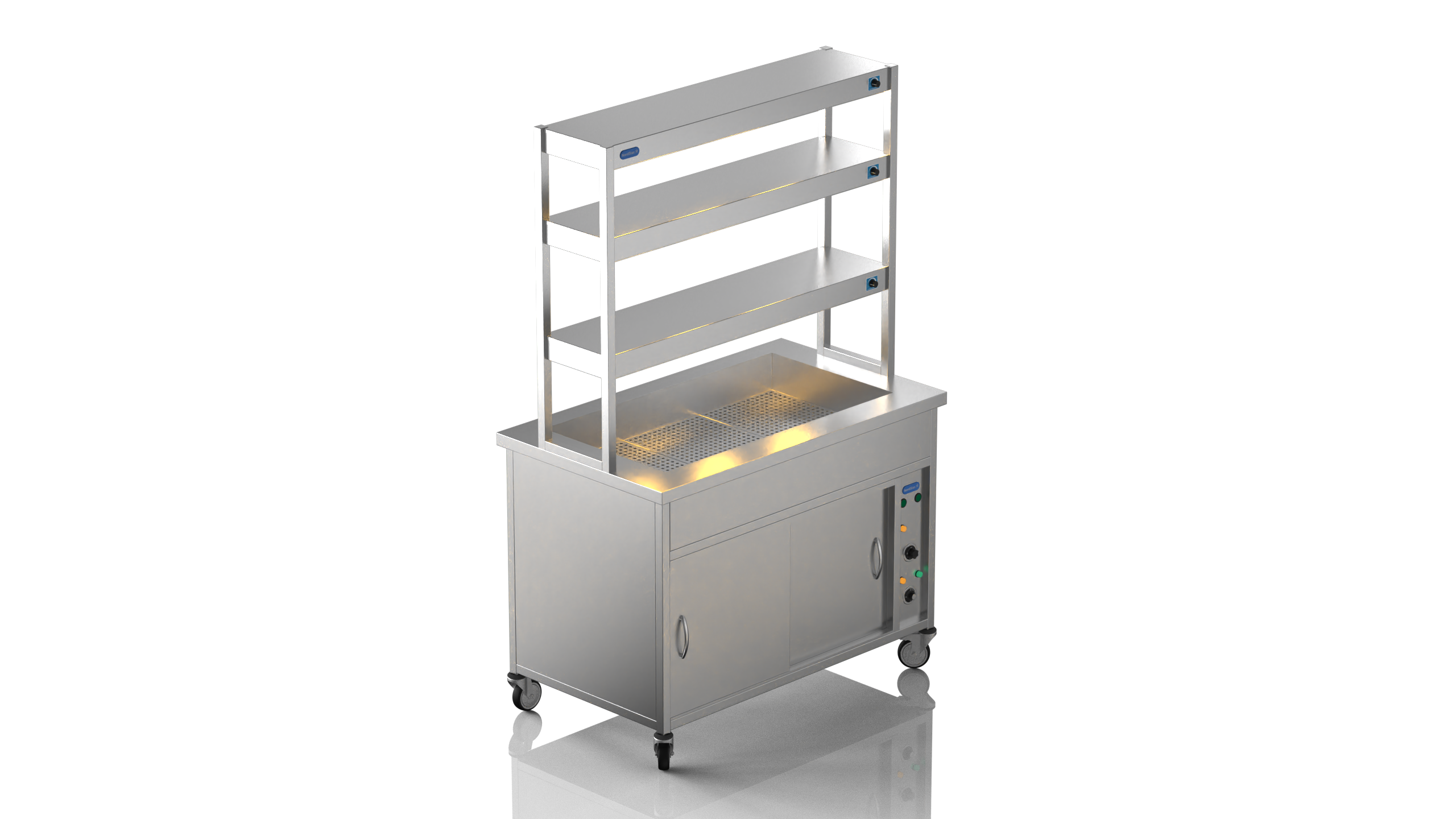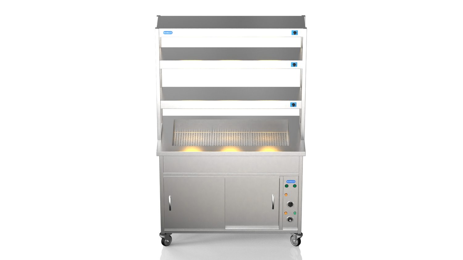 The independently controlled Bain Marie top is fully adaptable and can accommodate smaller pans, making it easy to serve a diverse range of dishes — ideal for catering to dietary preferences or special meal plans. Key Features: Fits 3 x 1/1 GN pans – Compact yet spacious enough for busy food service Dry heat Bain Marie top – Rapid heating and easy to maintain Three-tier heated gantry – Keeps food warm and visually appealing Hot cupboard with thermostat control – Maintains plate and food temperature Simmerstat control for Bain Marie – Precision temperature control Fitted with heavy-duty castors – Easy mobility for flexible positioning Optional accessories – Tray slide and sneeze guard available on request Gastronorm pans sold separately Gastronorm dividers sold separately.