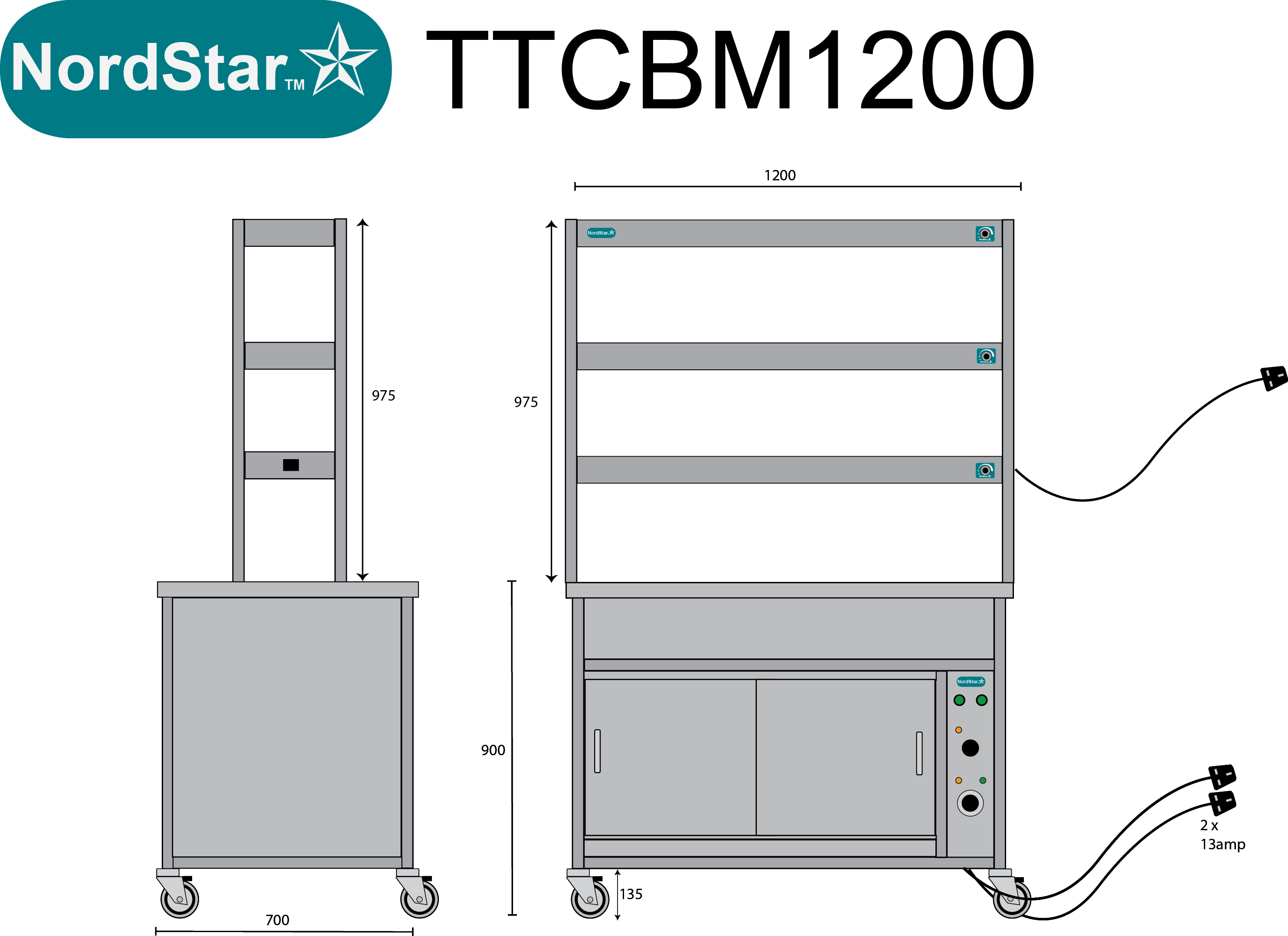 Nordstar NordStar Hot Cupboard Bain Marie 3 x 1/1GN With 3 Tier Heated Gantry | TTCBM1200 is pre-ordered and will ship as soon as it is back in stock.