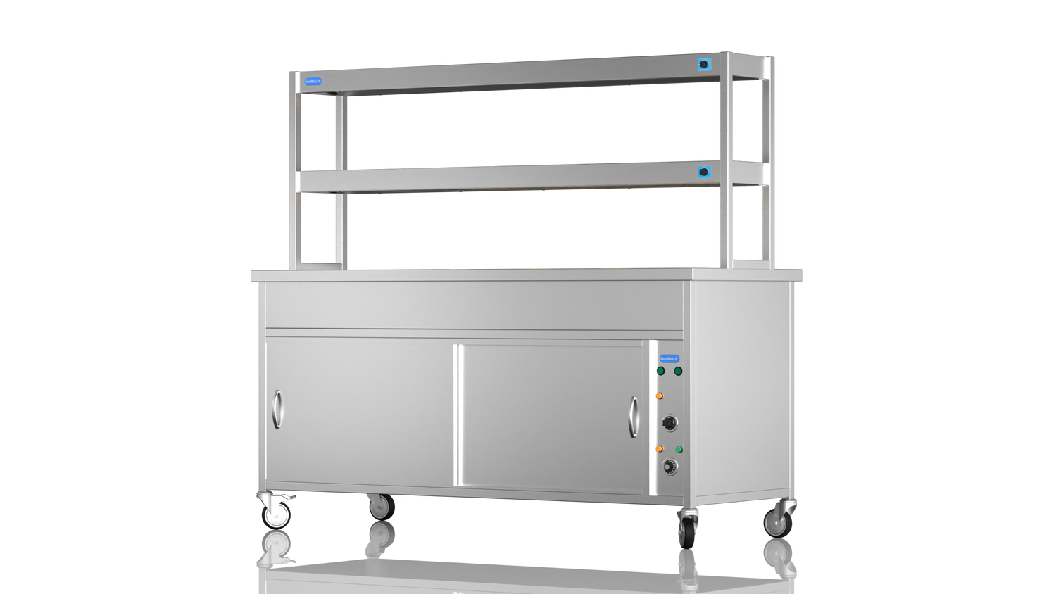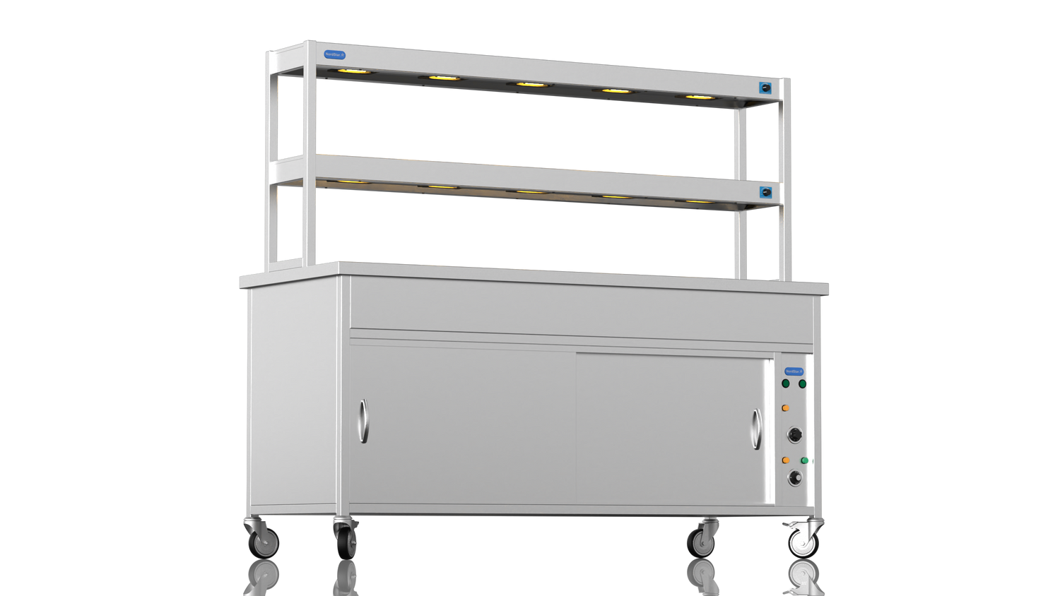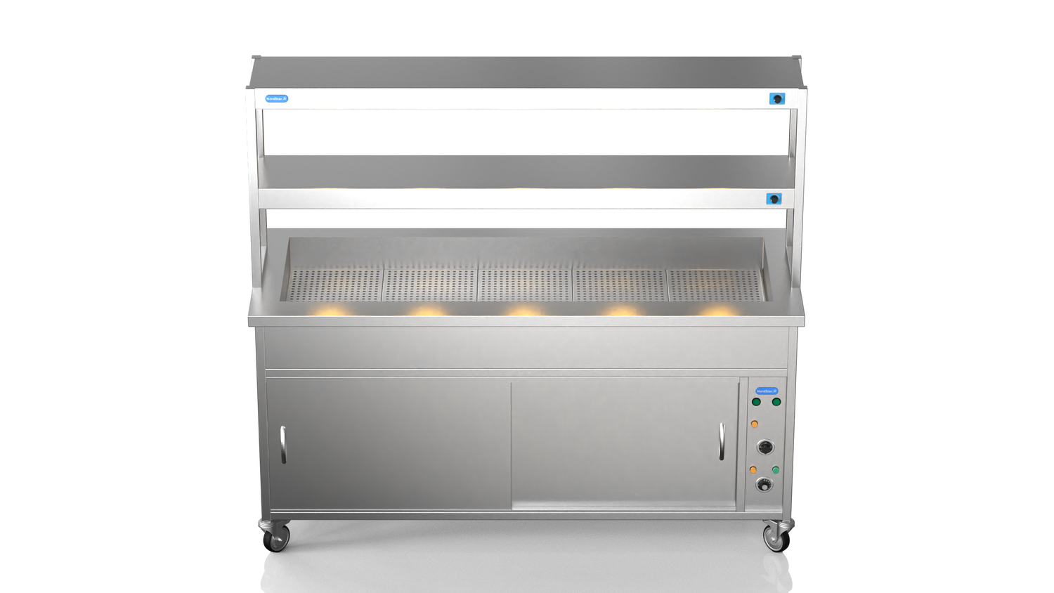 Key Features: 5 x 1/1 GN CapacityServe multiple hot dishes with ease in high-volume service settings. Dry Heat Bain Marie Top Independently controlled and configurable for varied pan sizes—great for managing dietary options or portion control. Hot Cupboard with Thermostat Control Maintains consistent temperatures to keep food warm, safe, and ready to serve. Simmerstat Control for Bain Marie Offers precise heat regulation to preserve food quality and reduce waste. Fitted with smooth-rolling castors for easy movement and cleaning access. Customisable Options Tray slide, sneeze guard and gastronorm dividers available on request for added functionality and hygiene compliance.