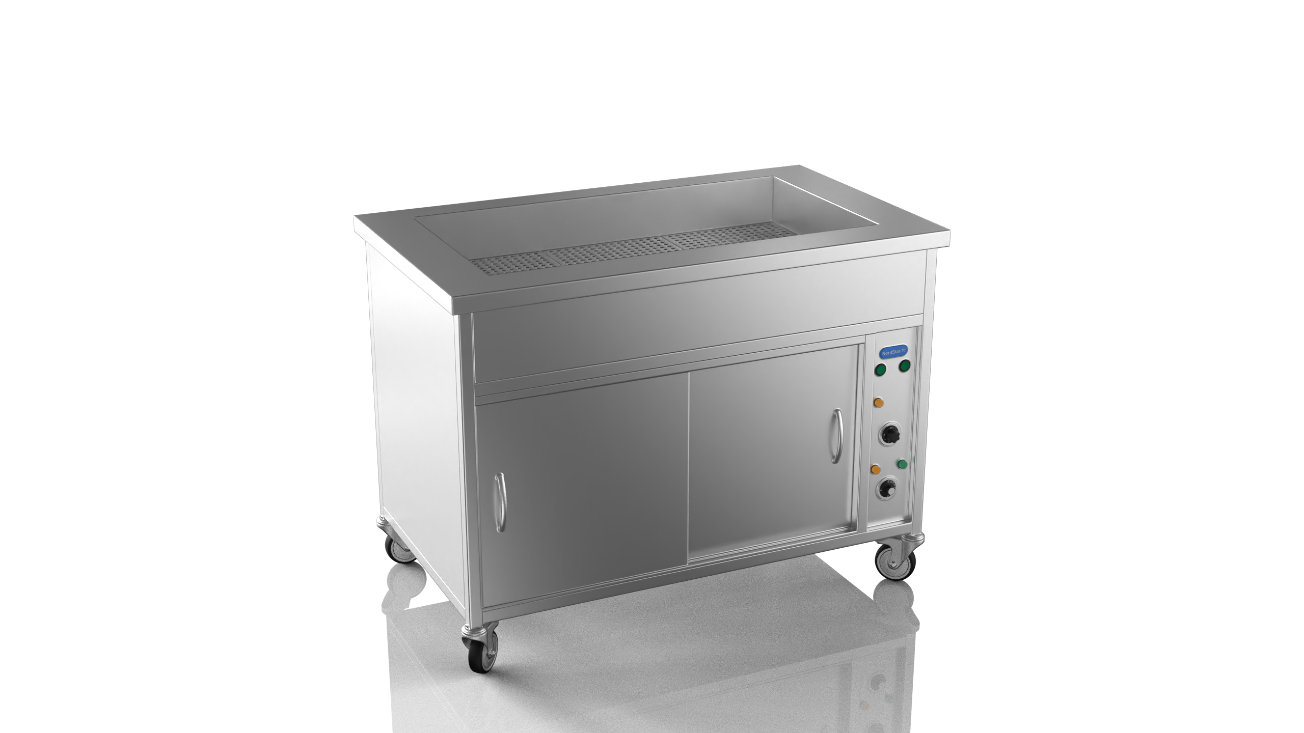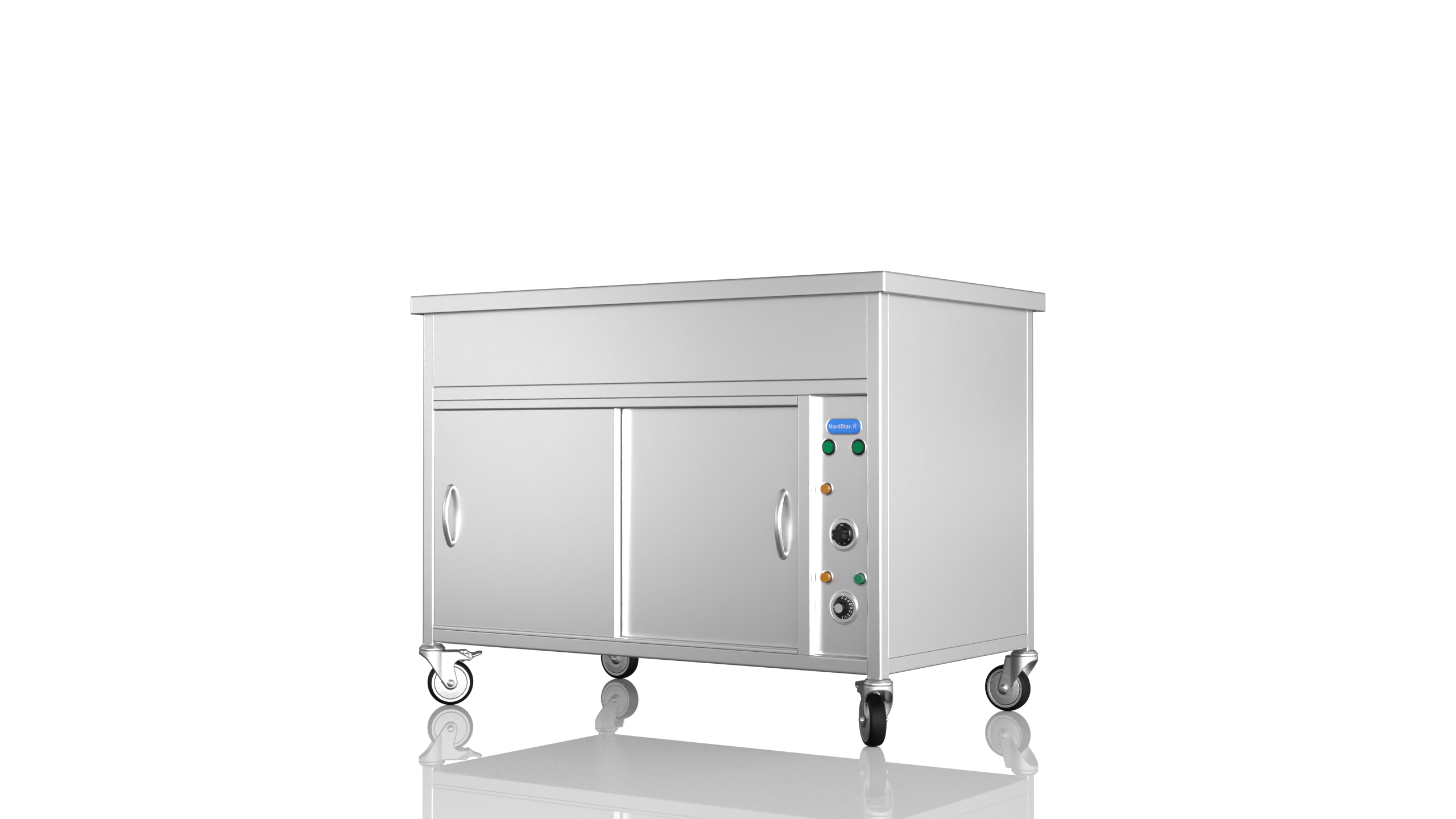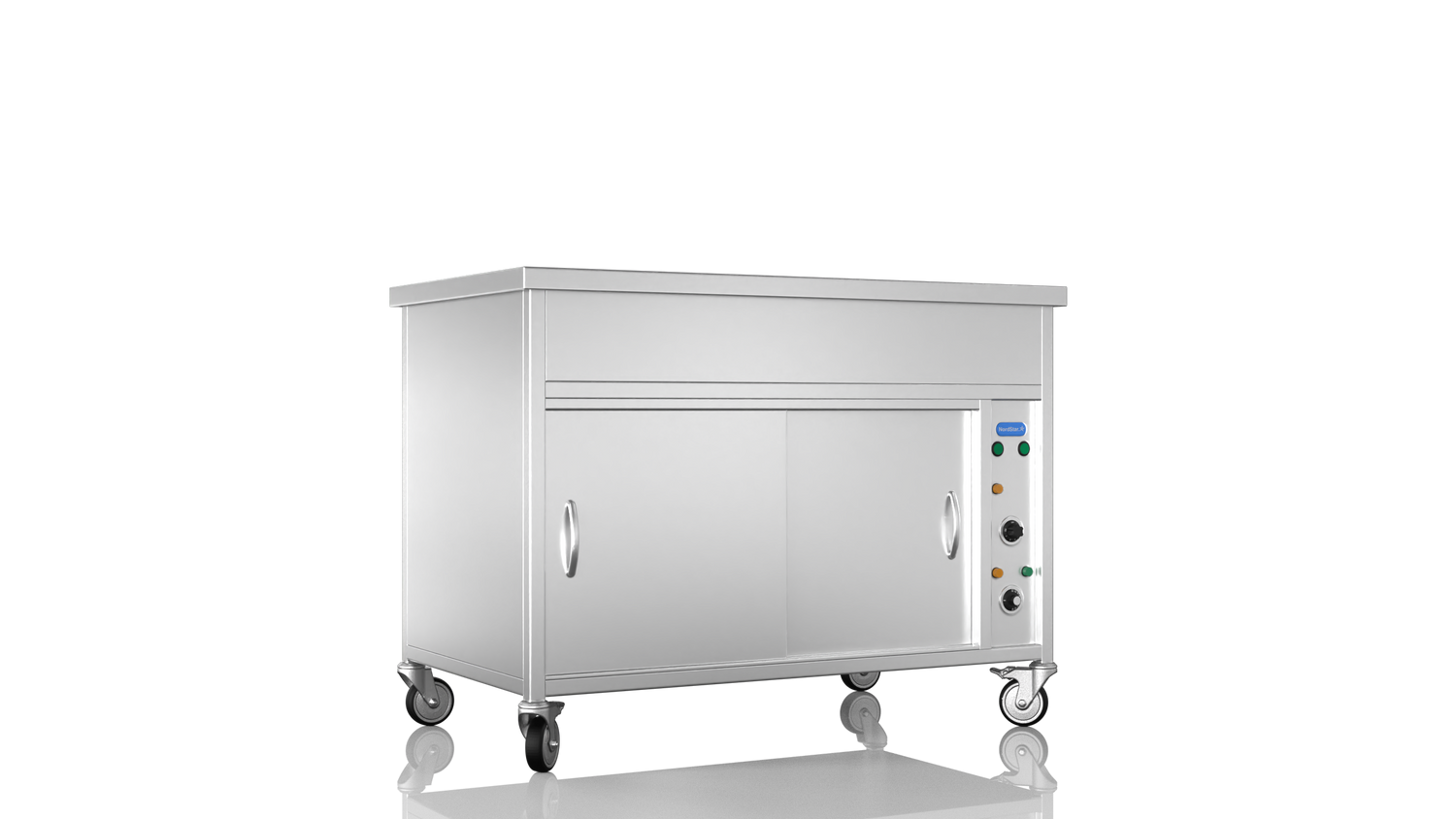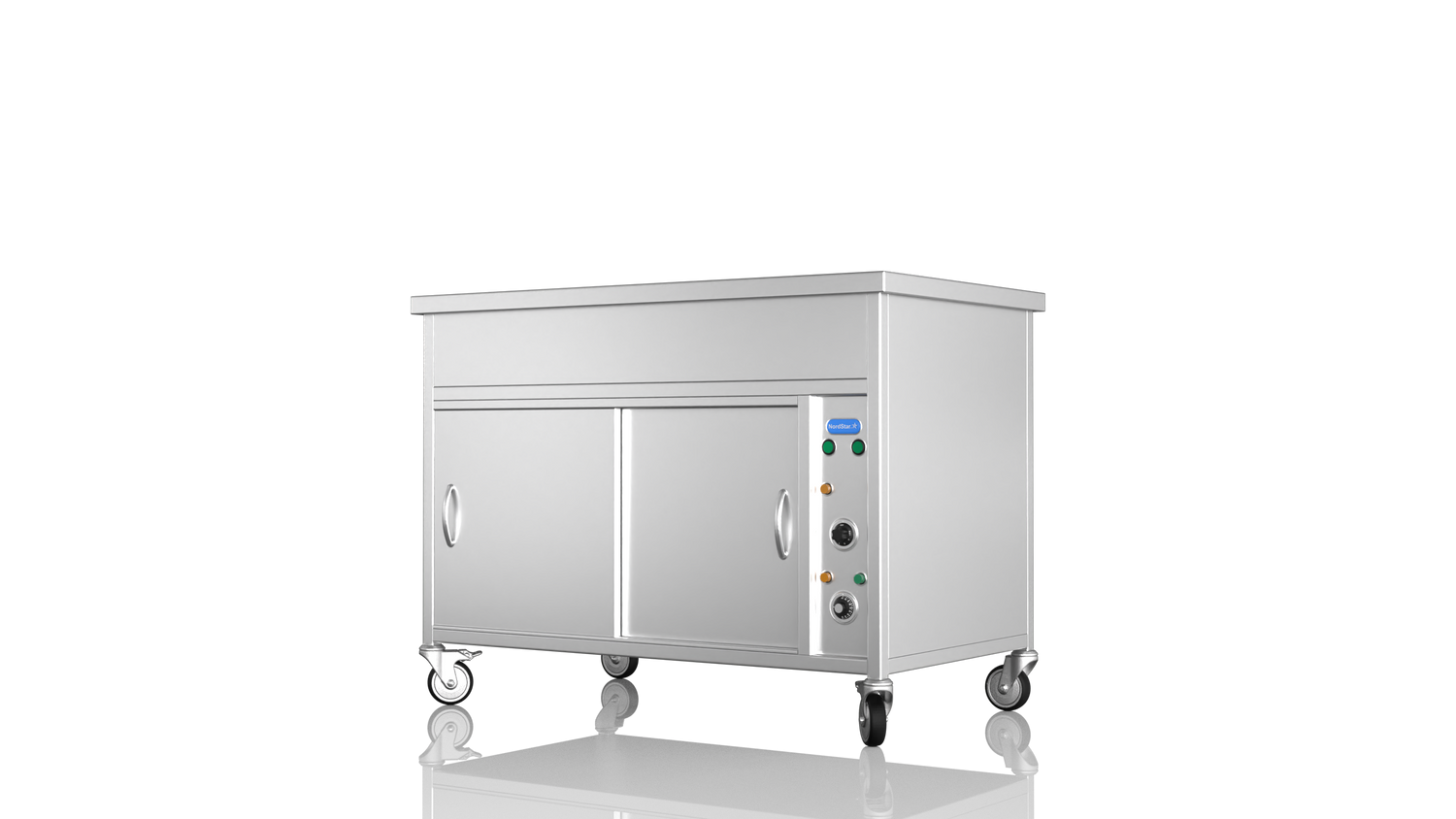 It also features a simple thermostat control for the hot cupboard, simmer stat control for the bain marie. comes complete with castors. can be fitted with tray slide at your request