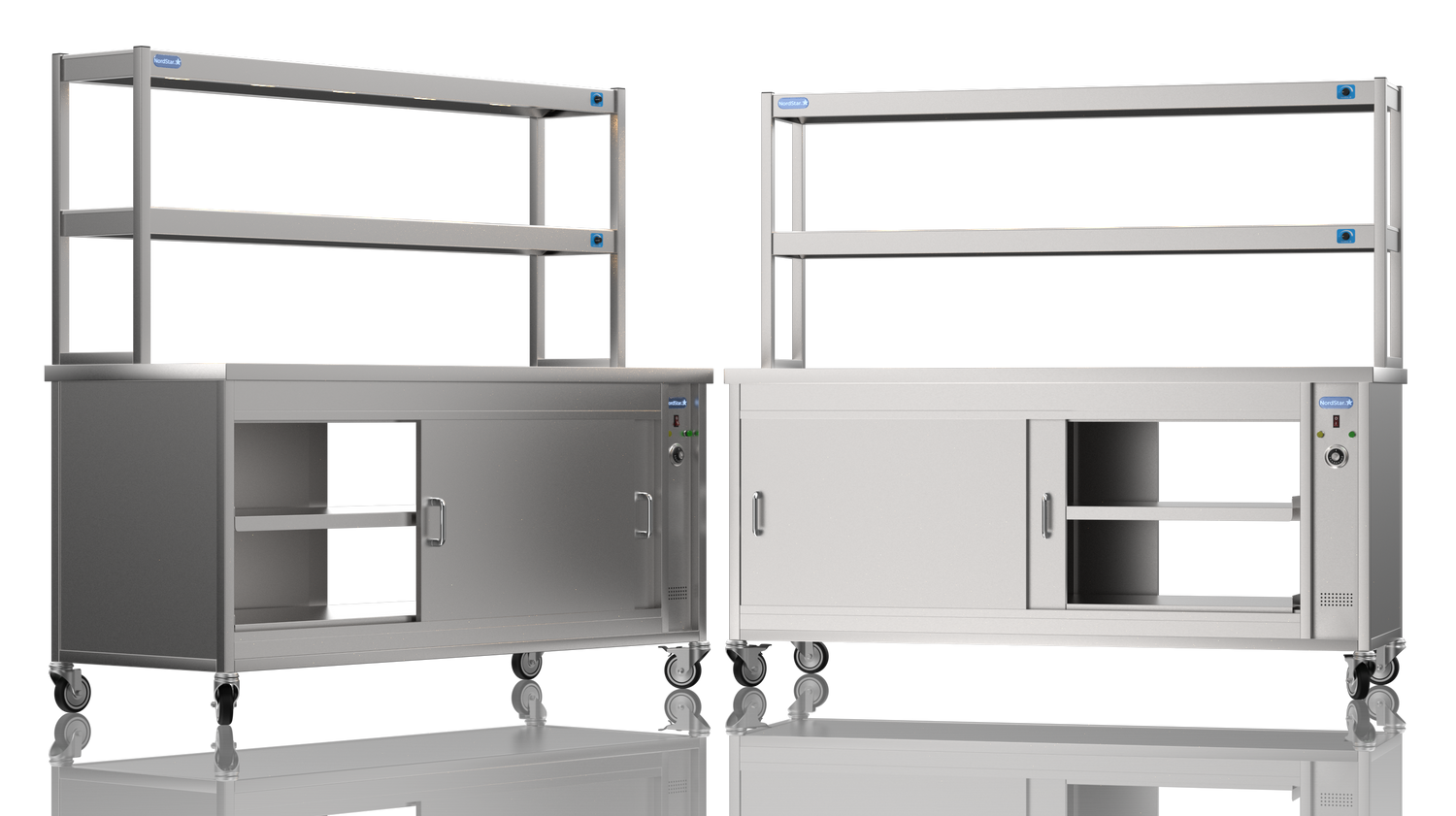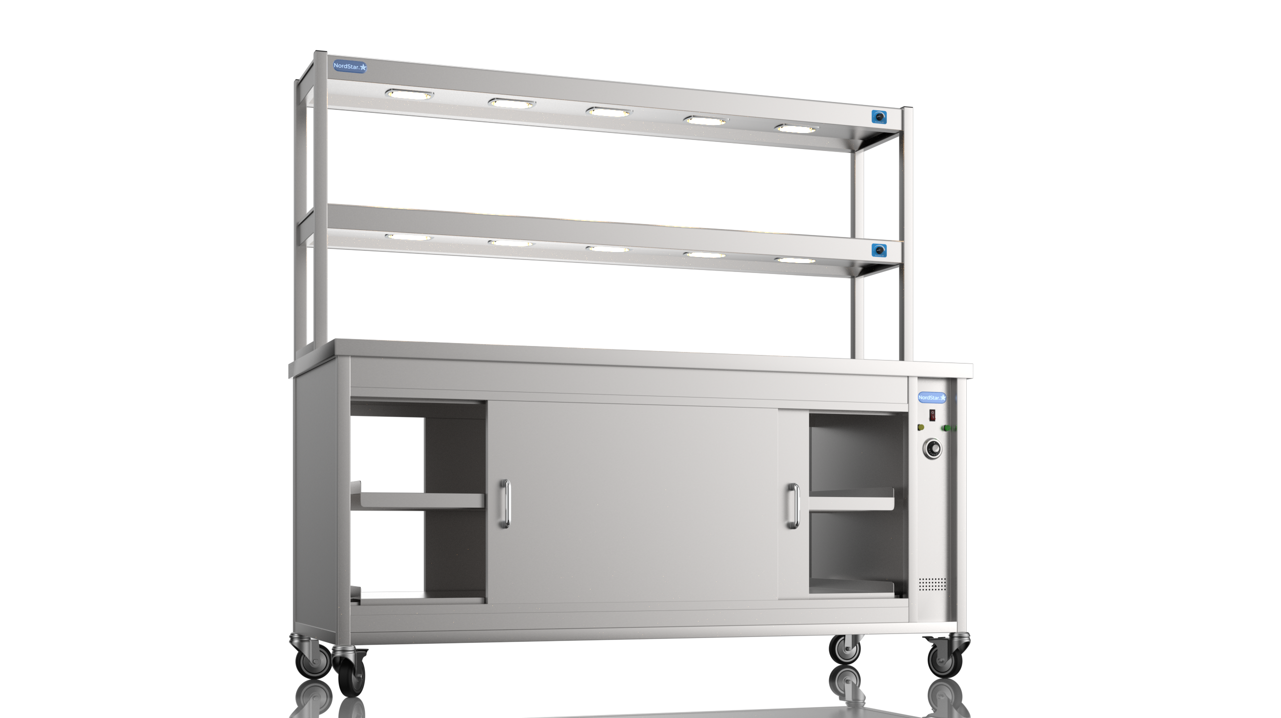 The Nordstar 2 Tier Gantry and Pass-though Hot Cupboard Combo 1800 Nord Star Pass-through Hot Cupboard with three Tier Gantry Hot Cupboard is a high quality, reliable appliance, ideal for care homes, restaurants and canteens. Constructed with easy to clean stainless steel, contents are kept at warm and hygienic temperatures due to its fully insulated panels, easily accessible using our own sliding door system both sides.