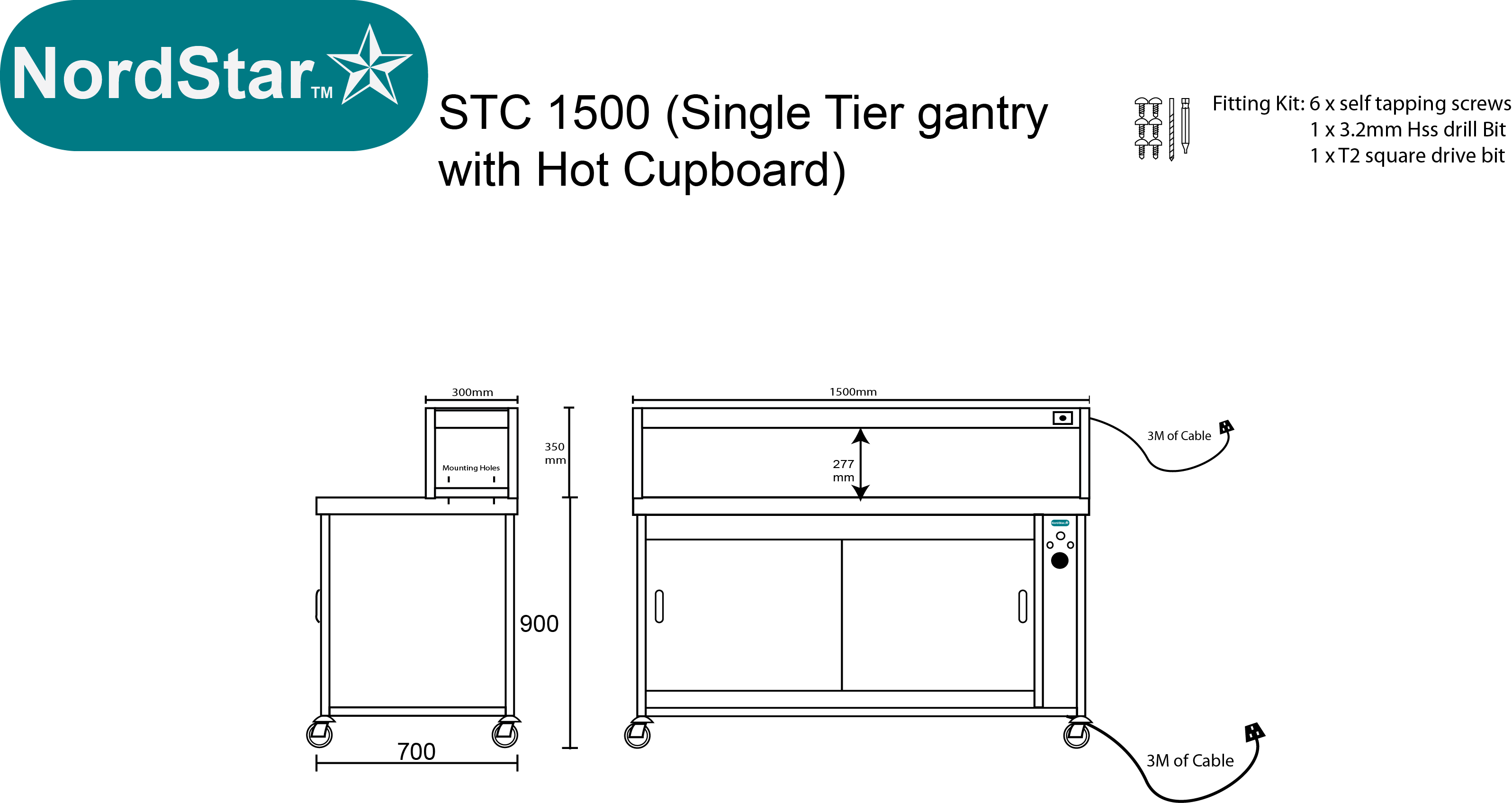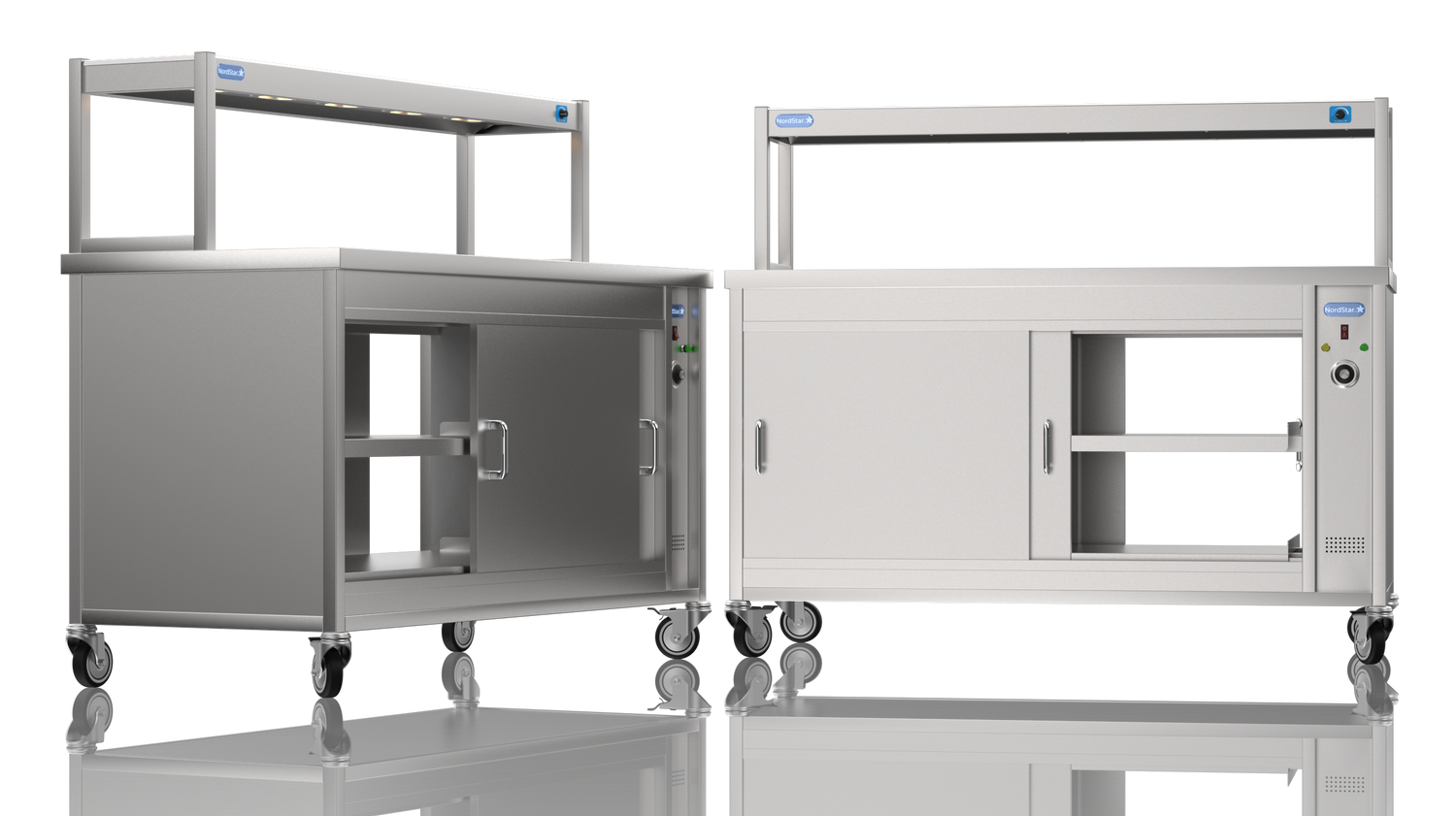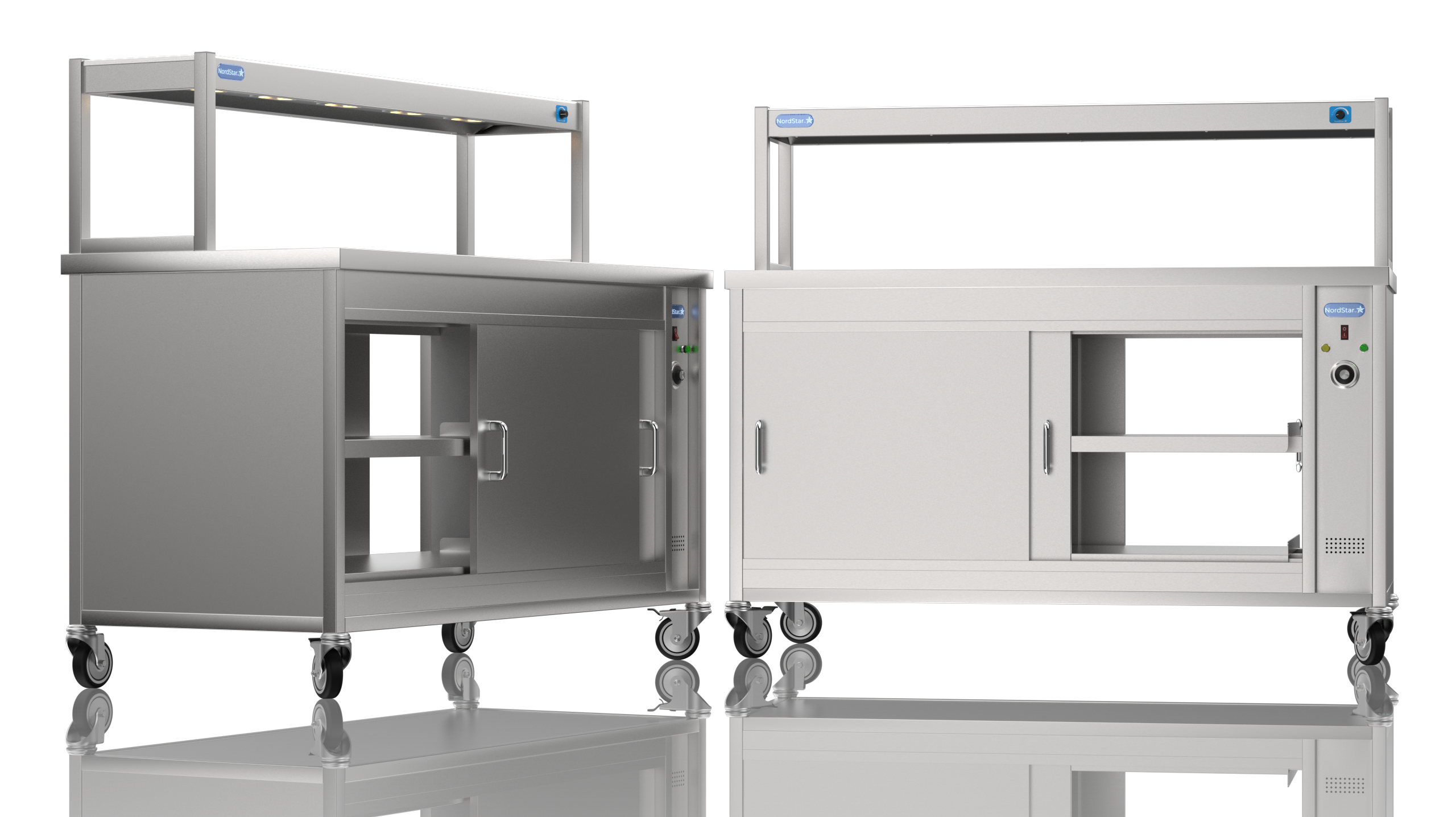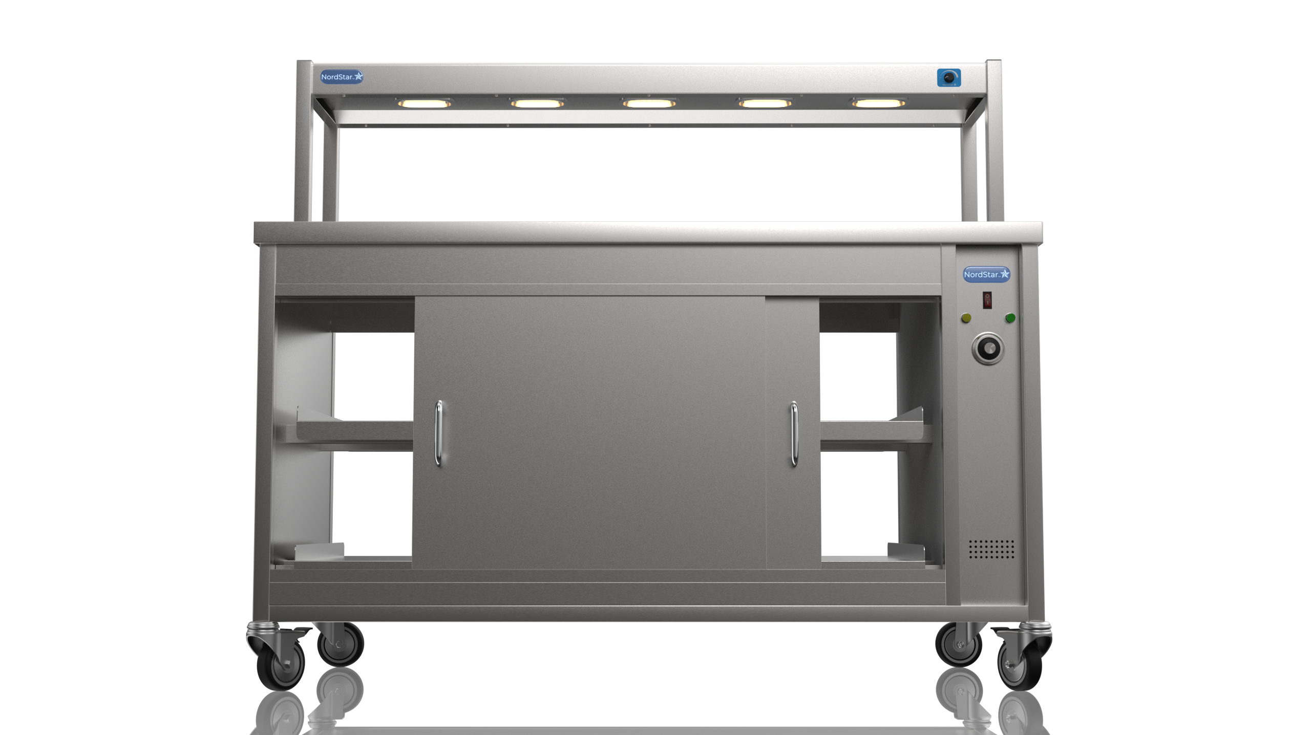 The Nordstar Single Tier gantry and pass through hot cupboard Combo 1500 Nord Star Pass Through Hot Cupboard with Single Tier Gantry Our Pass through Heated Cupboard is a high quality, reliable appliance, ideal for care homes, restaurants and canteens. Constructed with easy to clean stainless steel, contents are kept at warm and hygienic temperatures due to its fully insulated panels, easily accessible using our own sliding door system on both sides.