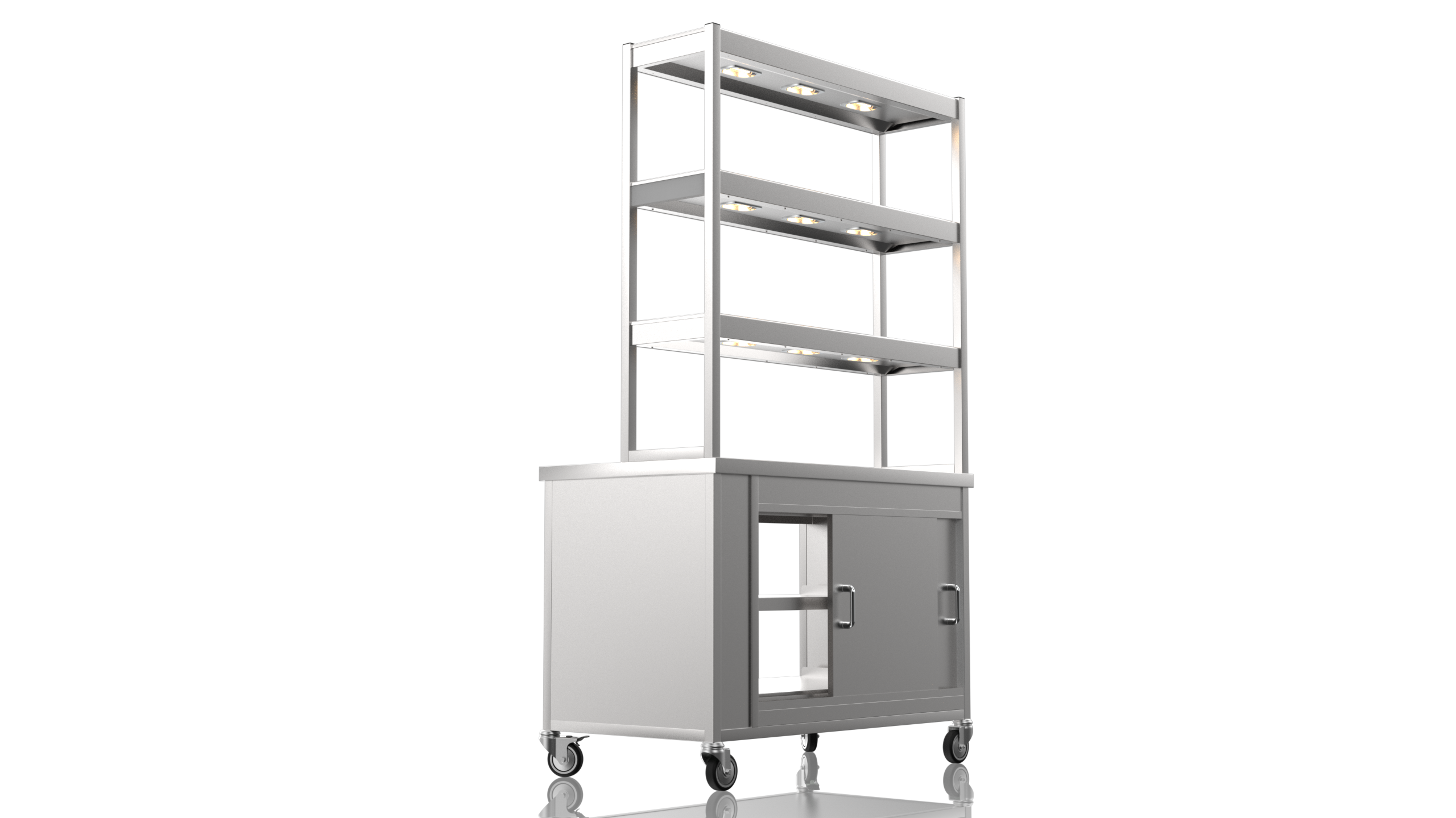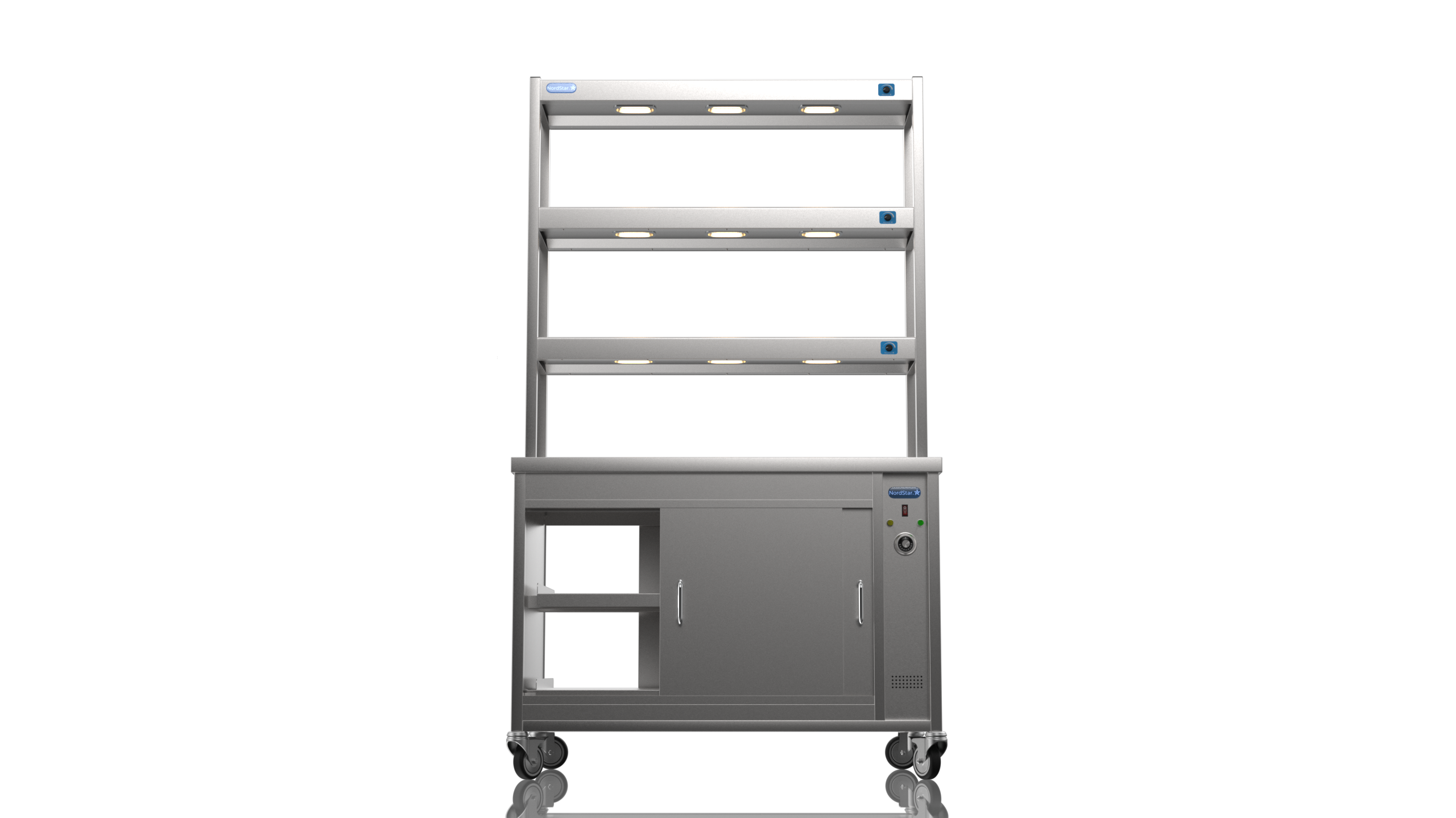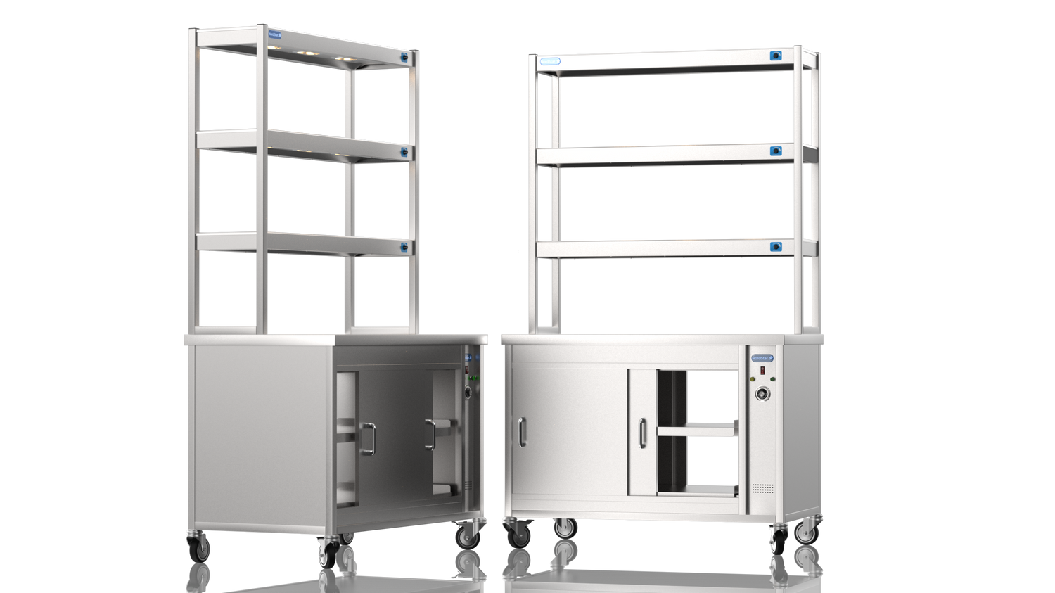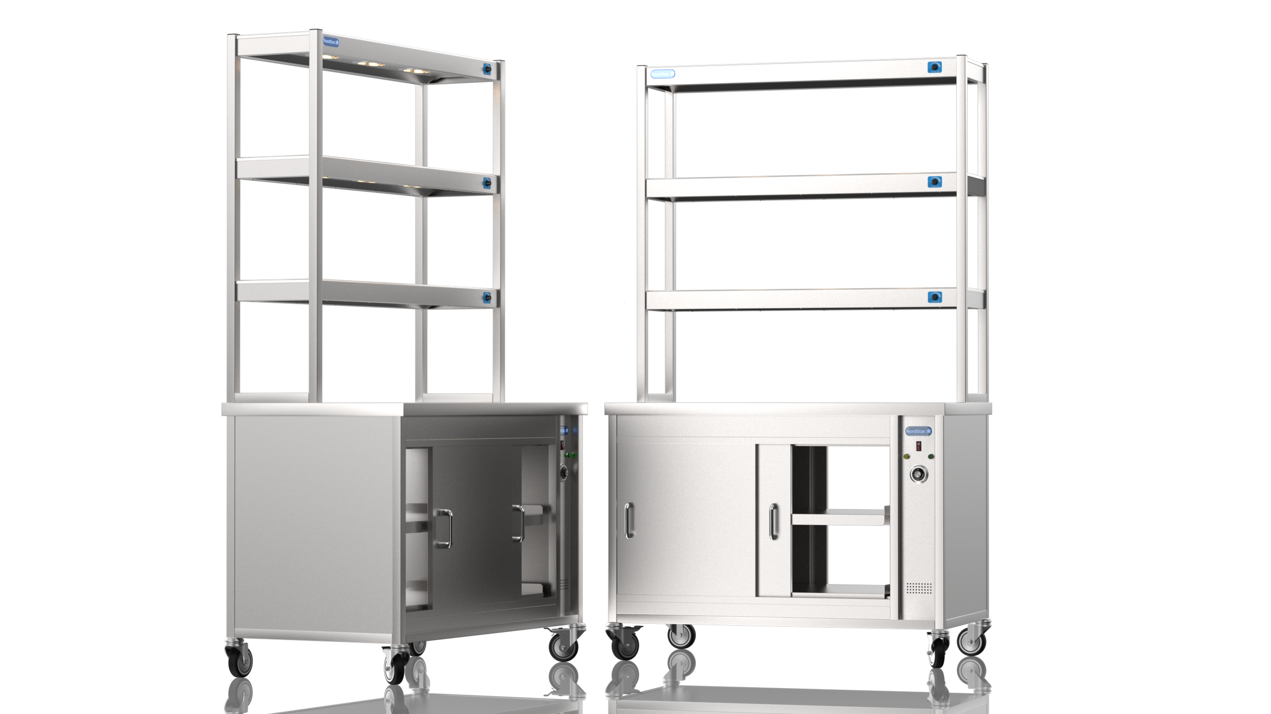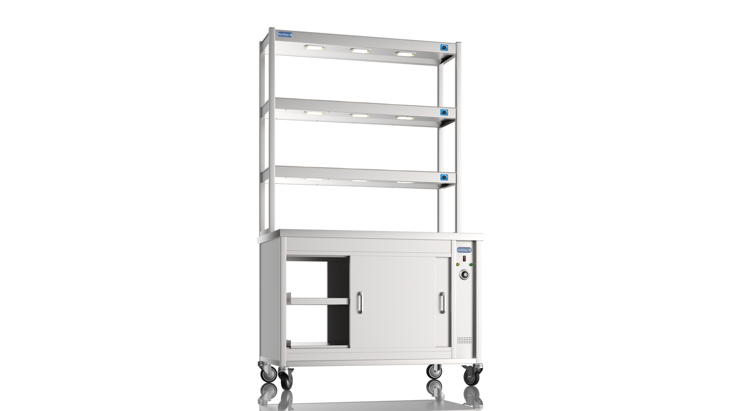The Nordstar 3 Tier Gantry and Pass Through Hot Cupboard Combo 1200 Nord Star Heated Cupboard with three Tier Gantry is a high quality, reliable appliance, ideal for care homes, restaurants, pubs and canteens. Constructed with easy to clean stainless steel, contents are kept at warm and hygienic temperatures due to its fully insulated panels,  easily accessible using our own sliding door system both sides.