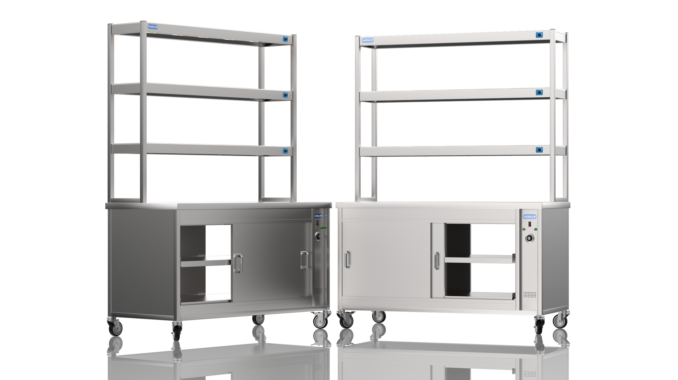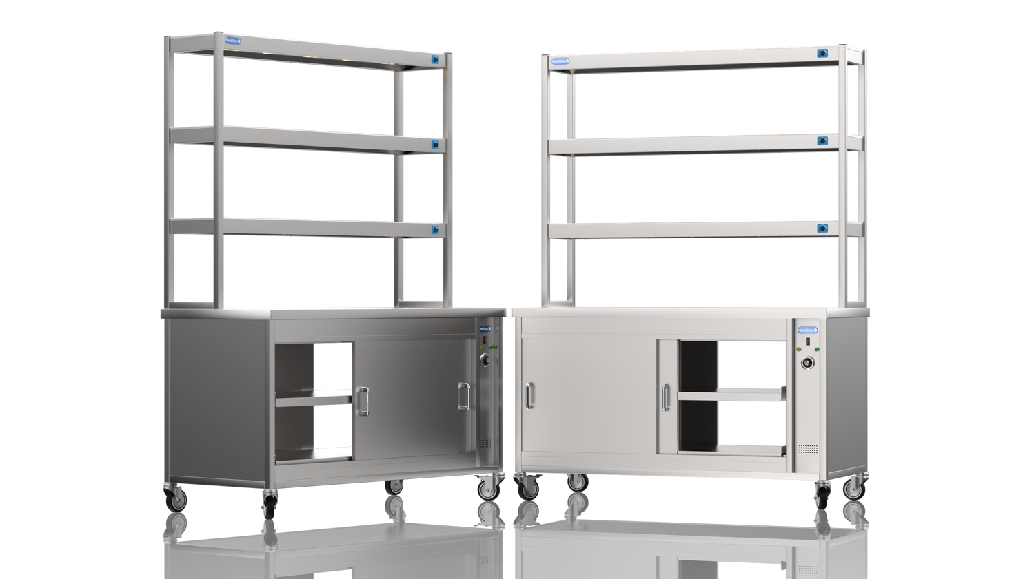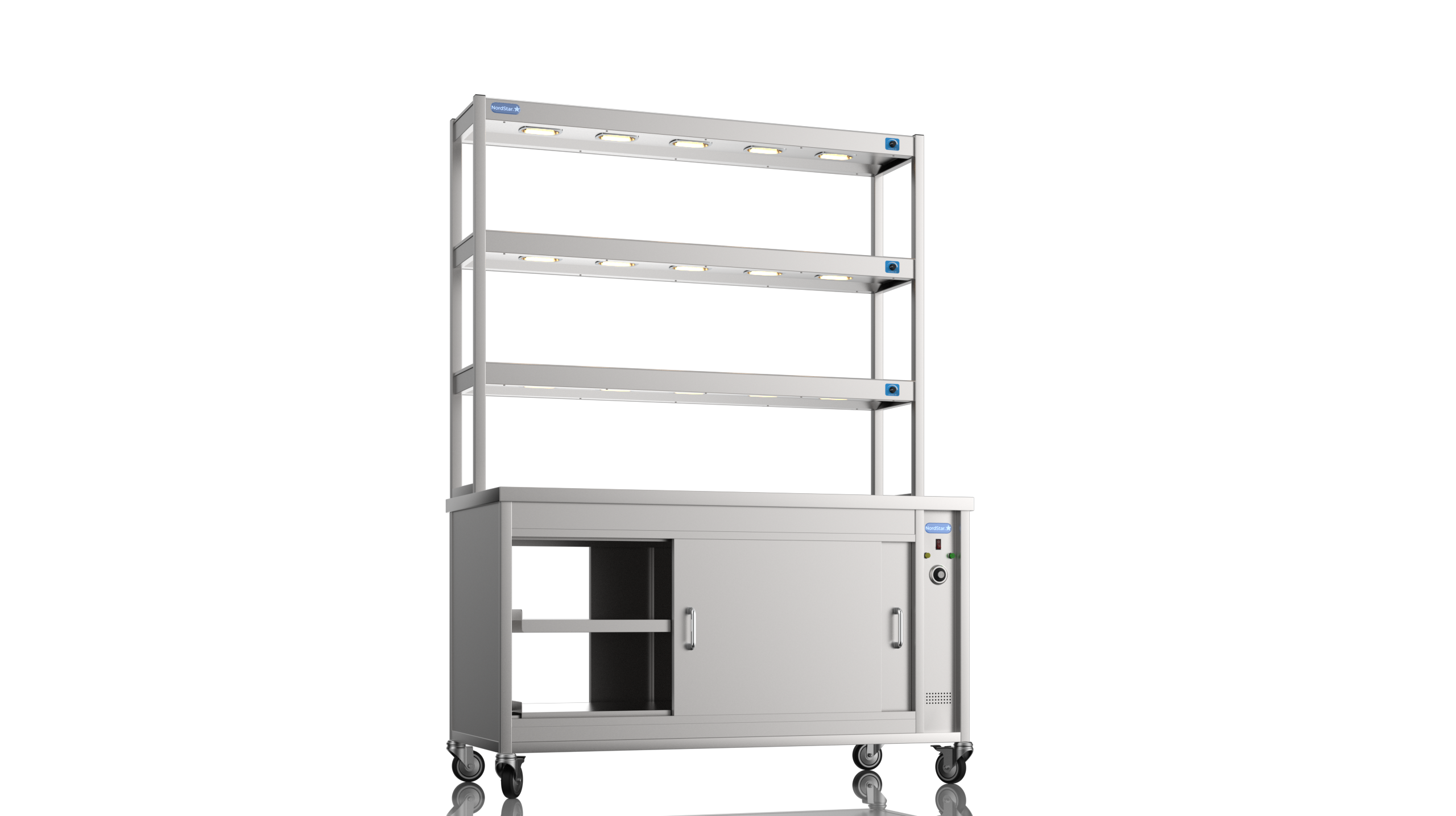 The Nordstar 3 Tier Gantry and Pass-though Hot Cupboard Combo 1500 Nord Star Pass-through Hot Cupboard with three Tier Gantry Hot Cupboard is a high quality, reliable appliance, ideal for care homes, restaurants and canteens. Constructed with easy to clean stainless steel, contents are kept at warm and hygienic temperatures due to its fully insulated panels,  easily accessible using our own sliding door system both sides. Perfect for confined spaces such as hallways and corridors.