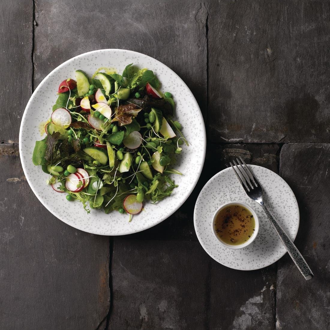 Striking dishes with a pattern inspired by volcanic ash. Finished in a chalk white, giving you the sophisticated feel of whiteware with a relaxed edge. Fully vitrified.