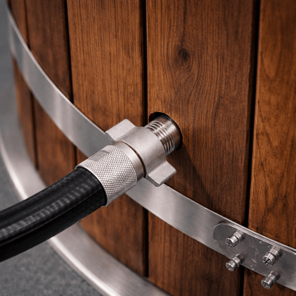 It features two standard 1/2" stainless steel connection points, which is the industry standard for high-quality ice baths: