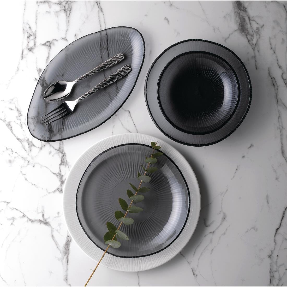 Glass crockery from the Churchill Bamboo range. Features Bamboo's statement lined rim, designed to frame your food. Dishwasher and microwave safe.
