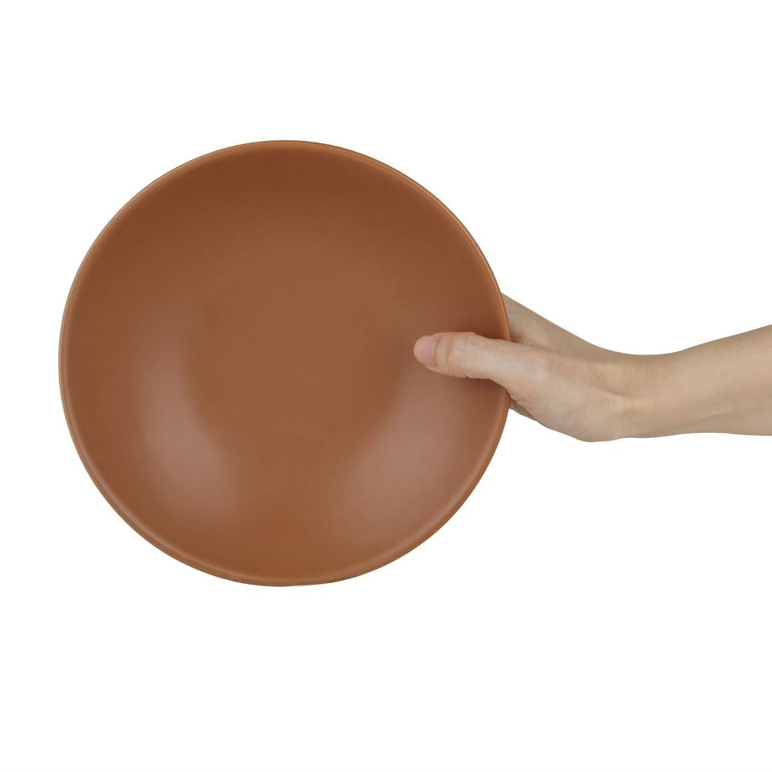 Crafted with a large, flat design, this pack of 4 bowls from Olympia is ideal for serving a wide variety of dishes. Whether you specialise in serving large servings of ramen or pho, or want to encourage a health-kick with your fresh Buddha bowls, these have what you need to make creativity possible. The terracotta colourway adds a rustic touch to your table service, whilst the glazed inner-bowl allows for easy cleaning after use.