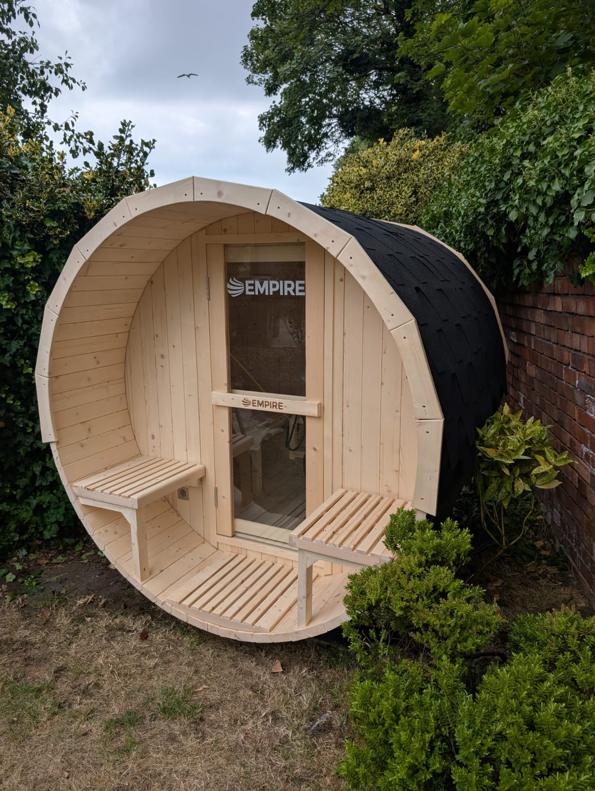 Bring the spa home with the Empire EMP-BSAUNA, a handcrafted 2–4 person outdoor barrel sauna made from premium spruce wood. Designed for efficiency, comfort, and beauty, this 1800mm x 1800mm sauna features a traditional rounded shape for faster heat circulation and a cozy front porch to relax before or after your session.