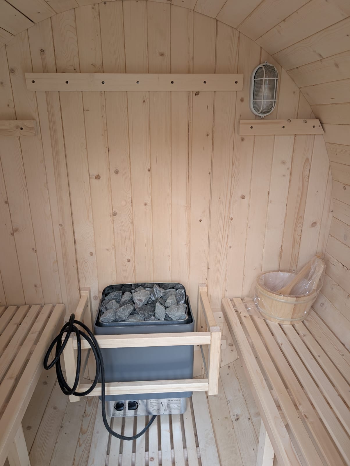 Fitted with a powerful 6kW electric heater (220V) and crafted with 8mm tempered safety glass, this unit delivers authentic dry heat therapy in a striking barrel-style design that complements any garden, patio, or spa retreat.