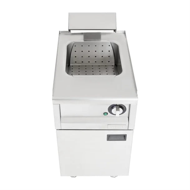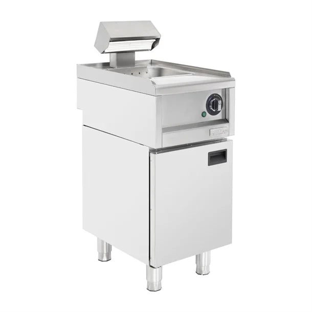 Using rapid heat-up overhead lighting, the contents are kept warm and crispy, whilst the perforated base plate minimises the chance of just-cooked fried food sitting in grease or fat. And as the base plate has a gentle slope, it's effortless to access the contents with an appropriate scoop (sold separately).