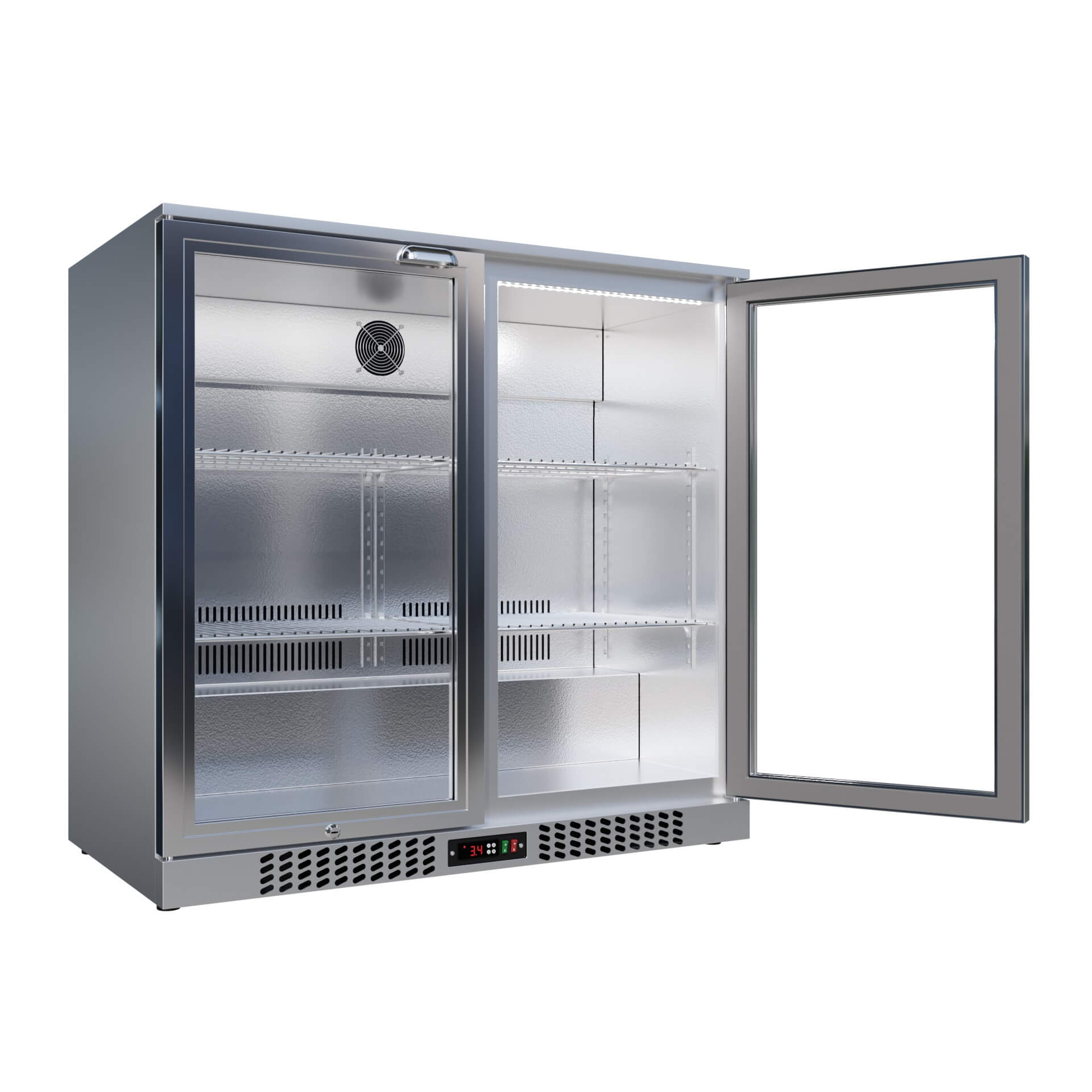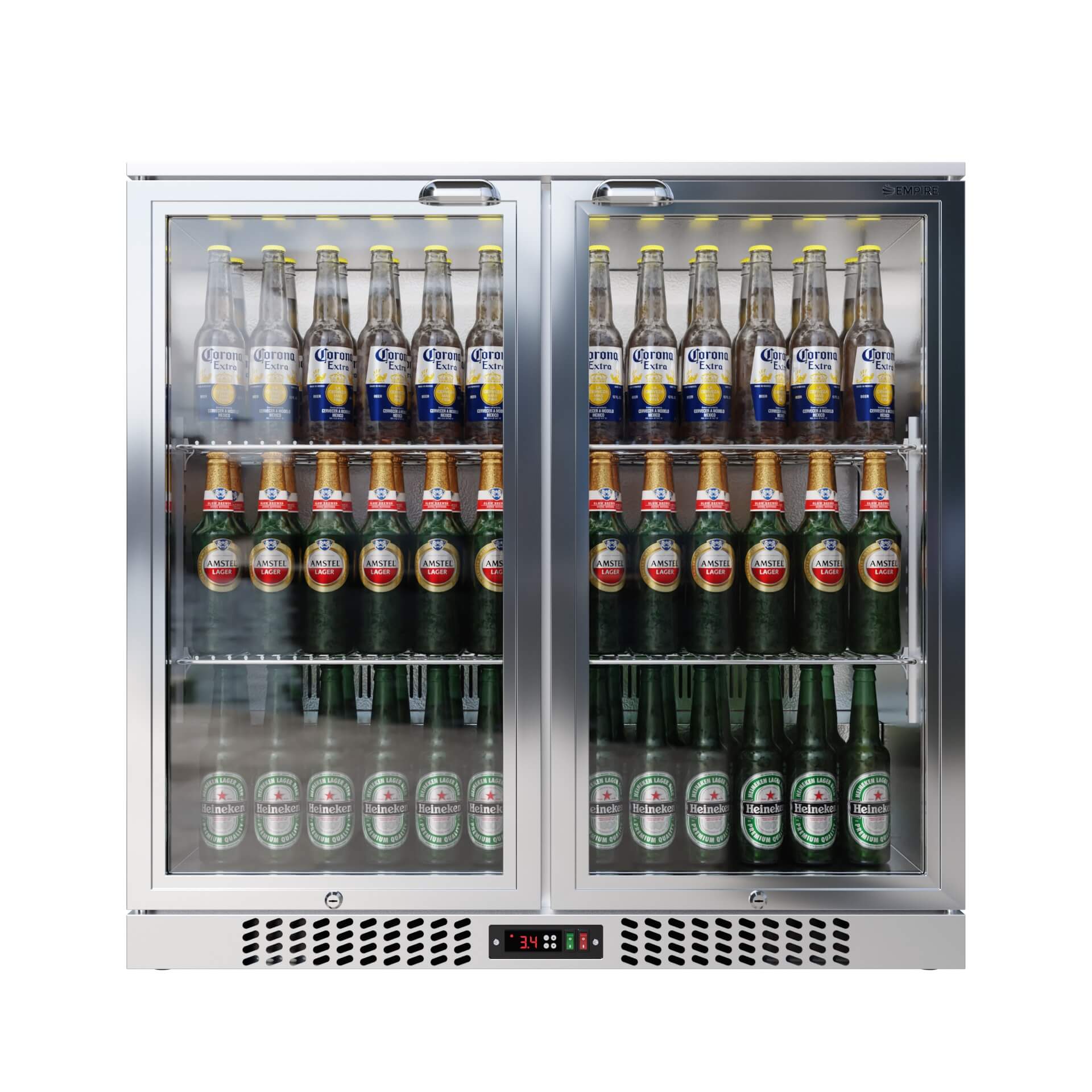 The Empire double hinged door stainless steel back bar chiller with LED Lighting is perfect for keeping your best sellers chilled and ready at your disposal. With two large, clear doors, this multipurpose beer fridge comes with a range of useful features, including an integral temperature controller and auto defrost.