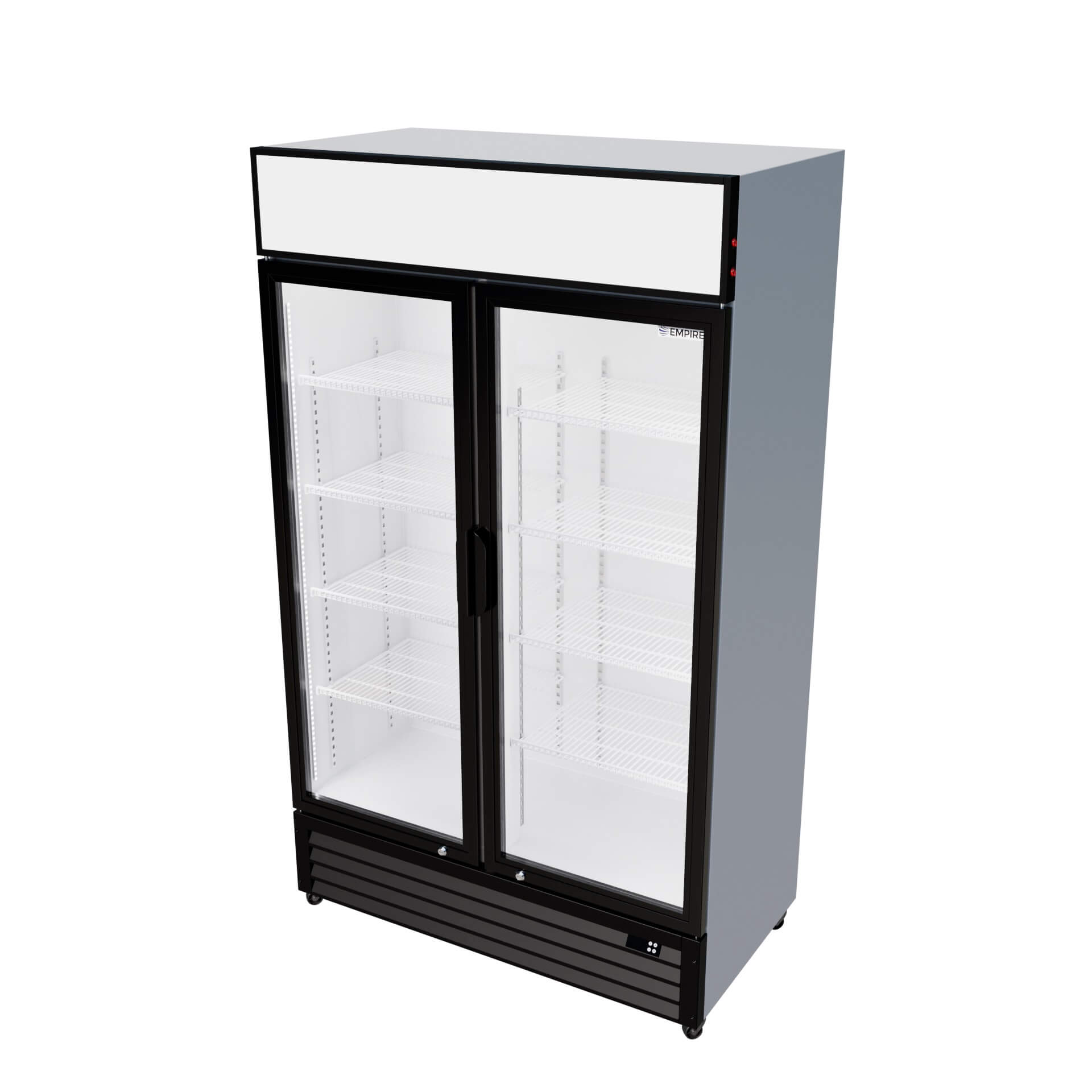 Empire Double Door Display Cooler Hinged – Commercial Fridge with Merchandising Canopy | CL-690A is pre-ordered and will ship as soon as it is back in stock.