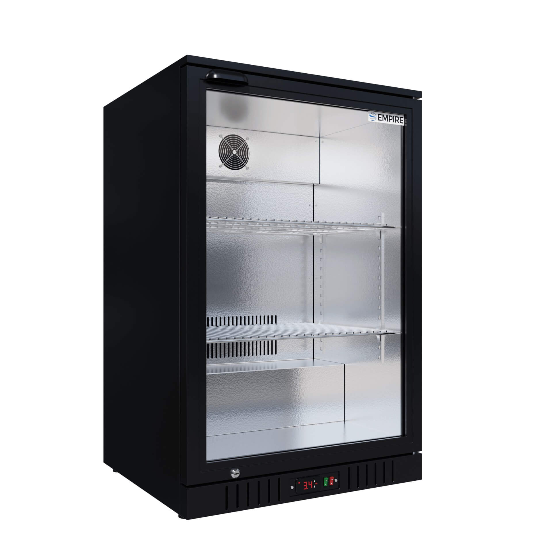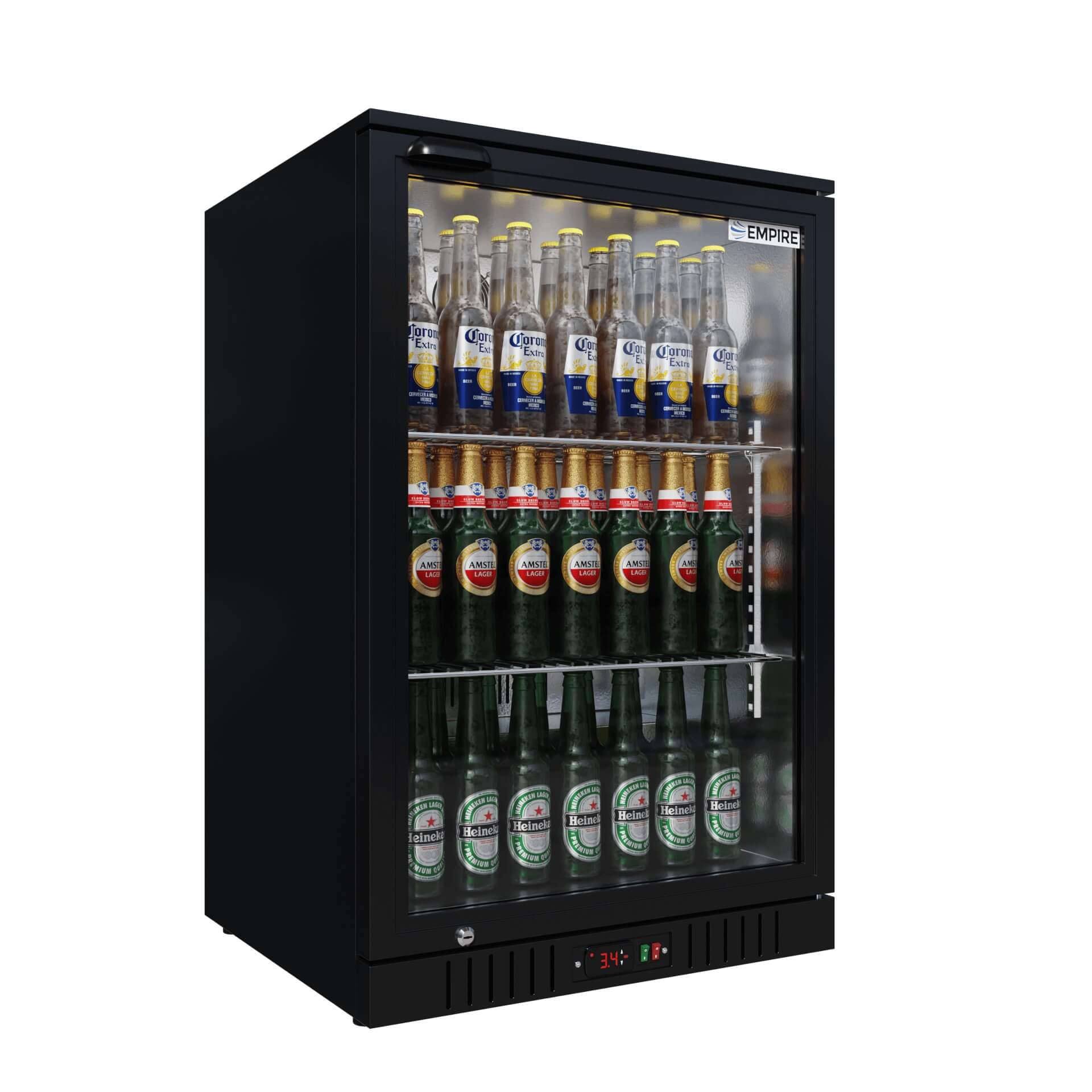 The Empire single hinged door back bar chiller in Black with LED Lighting is perfect for keeping your best sellers chilled and ready at your disposal. With a large, clear door, this multipurpose beer fridge comes with a range of useful features, including an integral temperature controller and auto defrost.