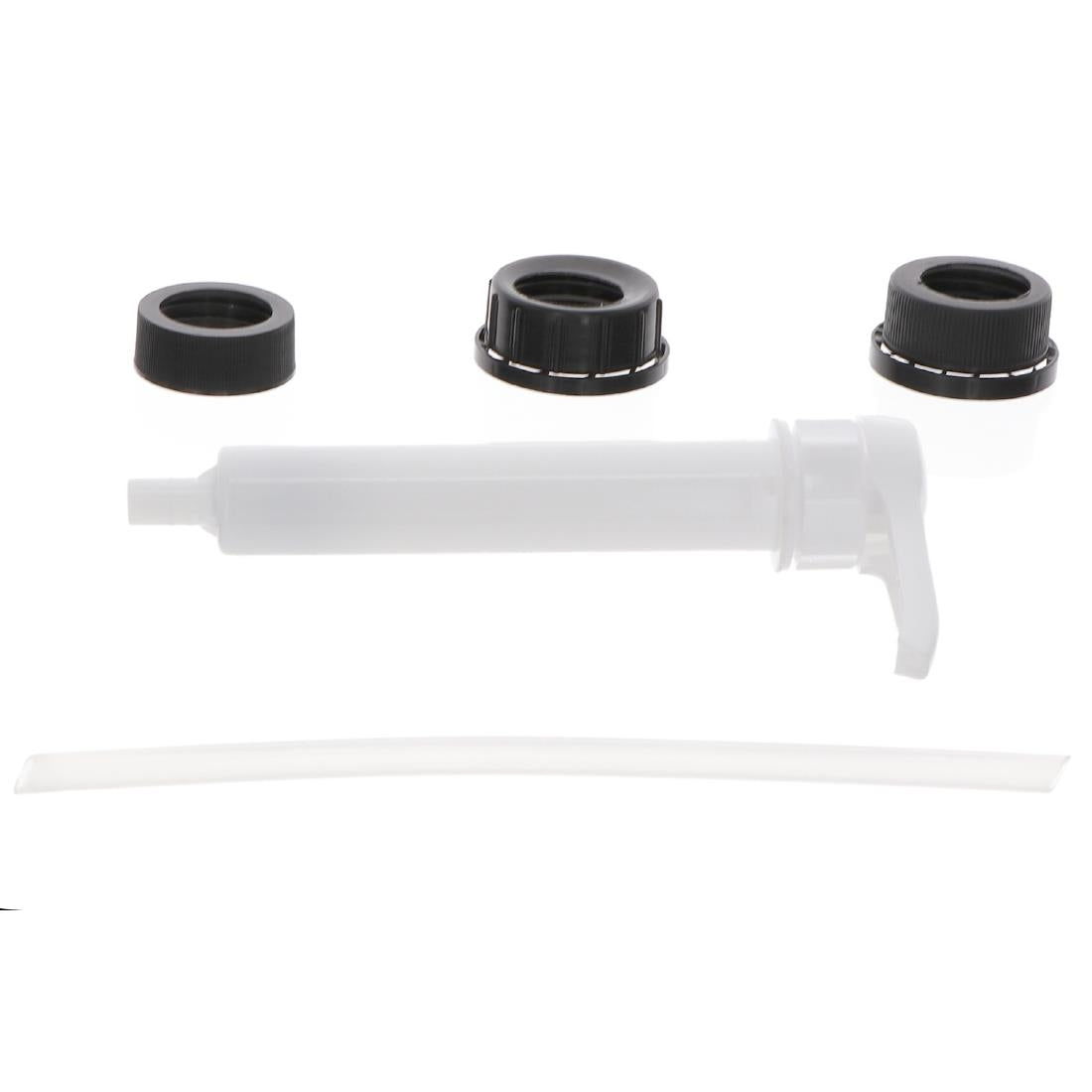 Universal dosing pump 30ml for can 5Ltr. Dosing pump with 3 caps suitable for all common type of 5Ltr can. Easy to dose. The 30ml dosing pump is delivered in plastic bags with the 3 standard caps : DIN38, DIN40 et DIN42. Fits on bottles with maximum depth of 305 mm.