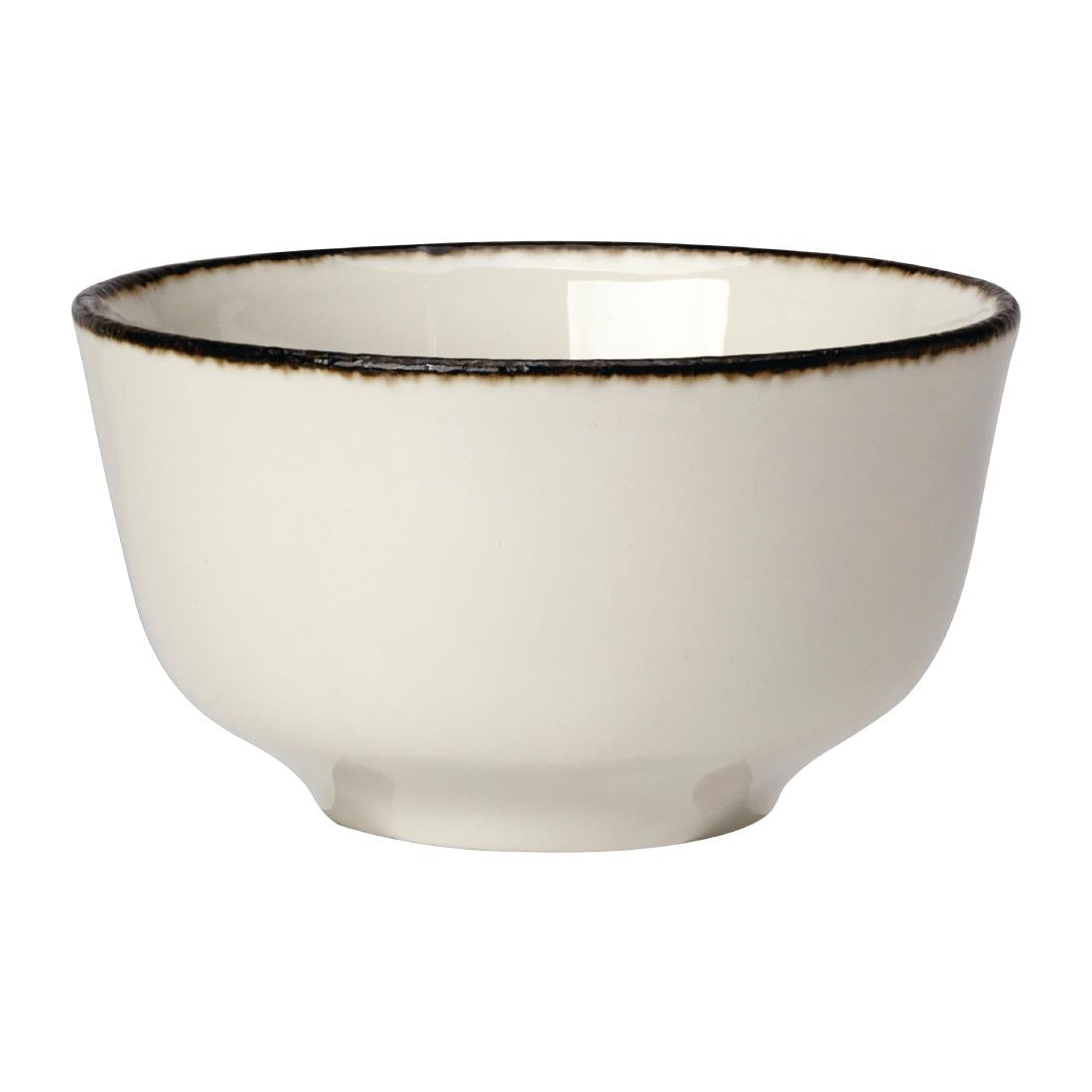 Alumina-enriched whiteware with a striking reactively glazed rim that differs from piece to piece. Ideal for putting a rustic twist on your dishes without abandoning the traditional, sophisticated feel of whiteware. Microwave, freezer and dishwasher safe.